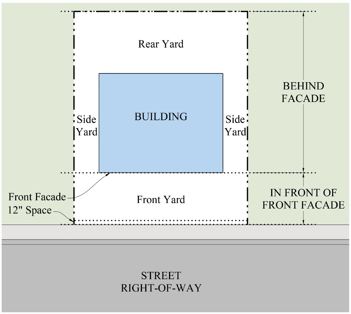 Section 12.1.04.11 Building Transitions applies when the rear or side of a property