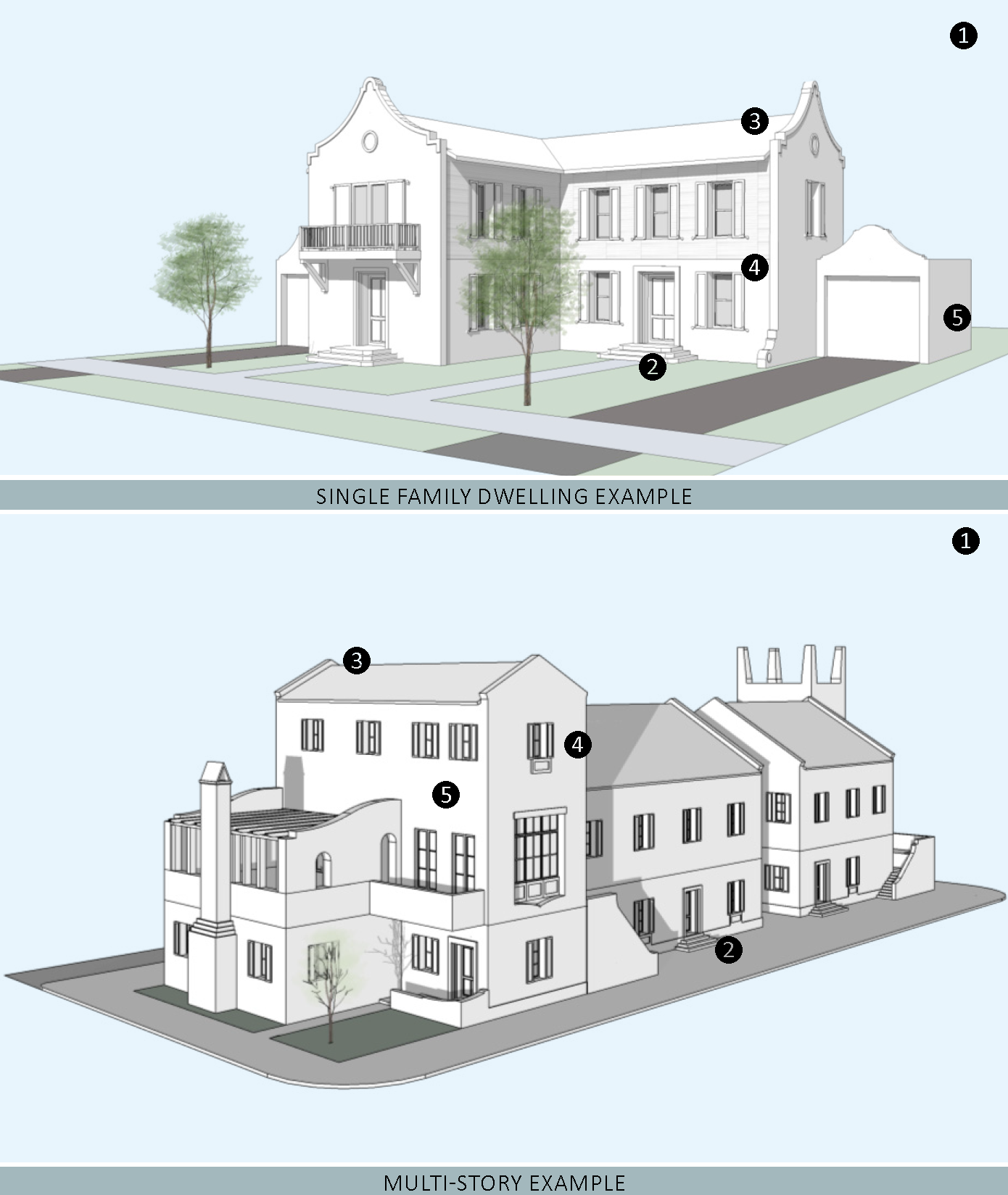 The Detached Estate Subdistrict is predominantly single-family homes characterized by larger lots.