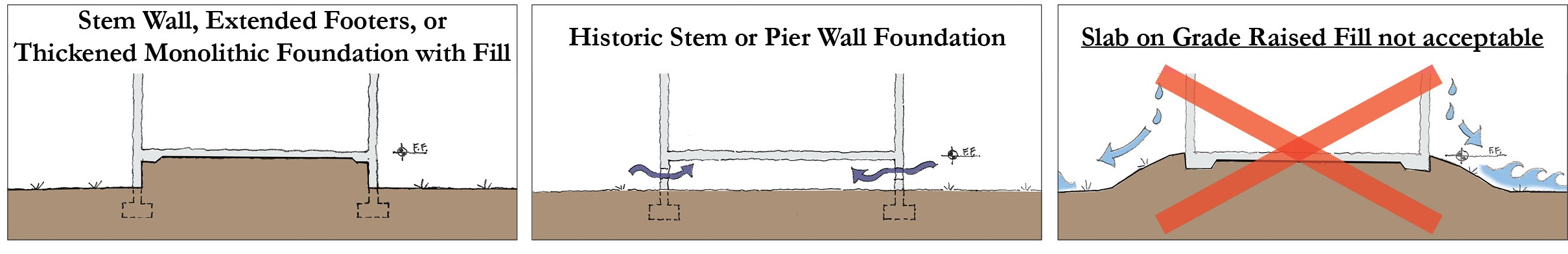 Substantial materials such as stone, concrete, brick, stucco, wood, steel, and aluminum are required.
