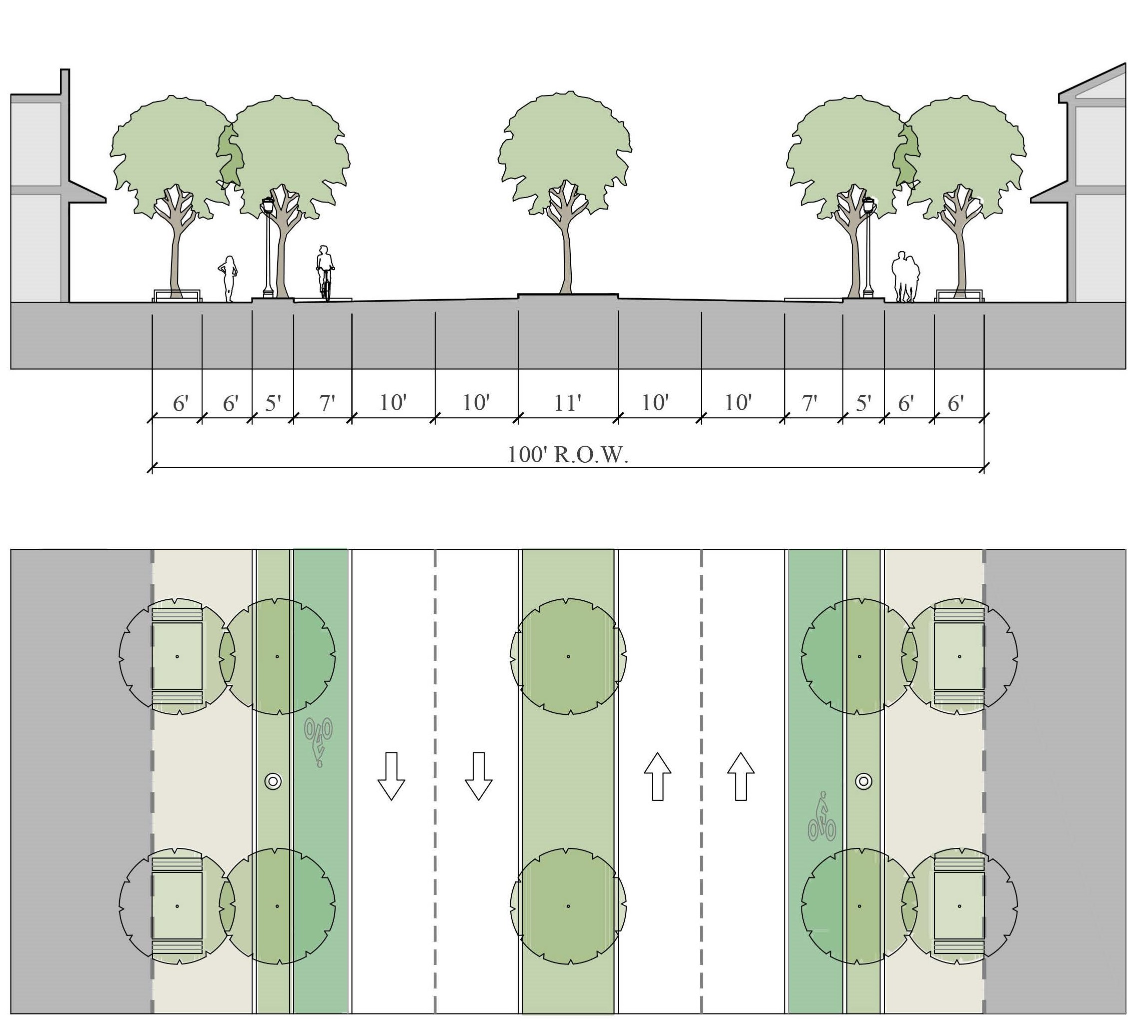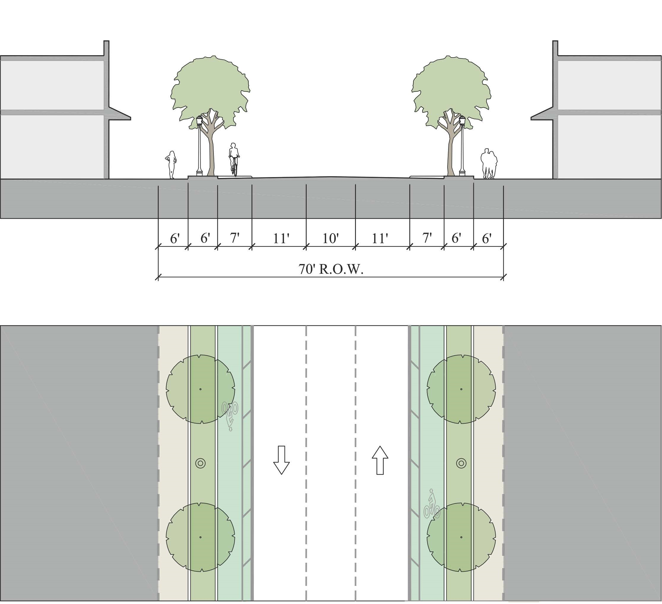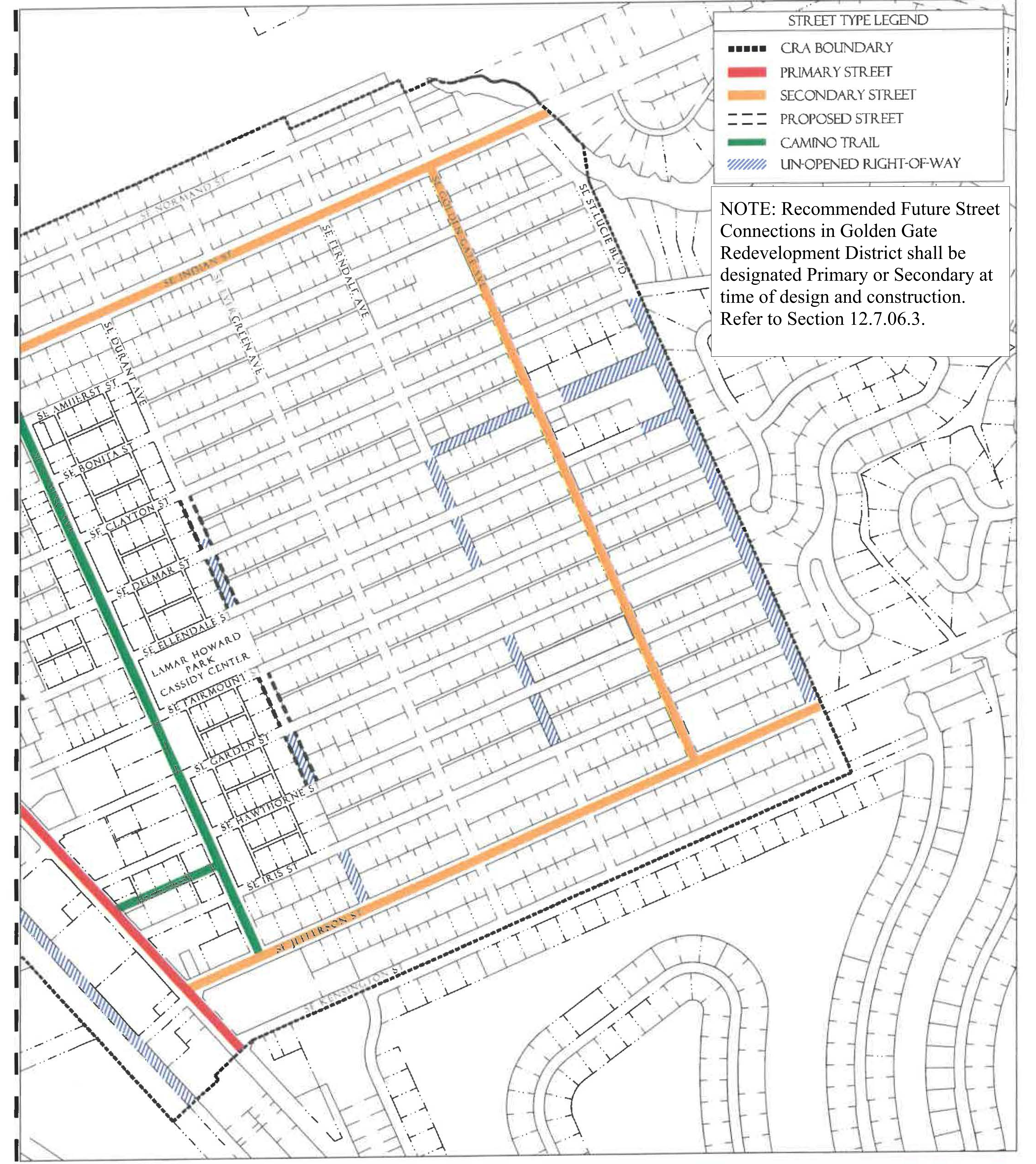 Secondary Streets identify corridors for future street improvement within the neighborhood which should include sidewalks and landscape improvements.