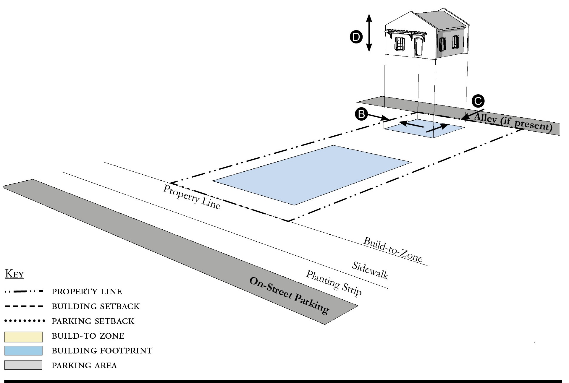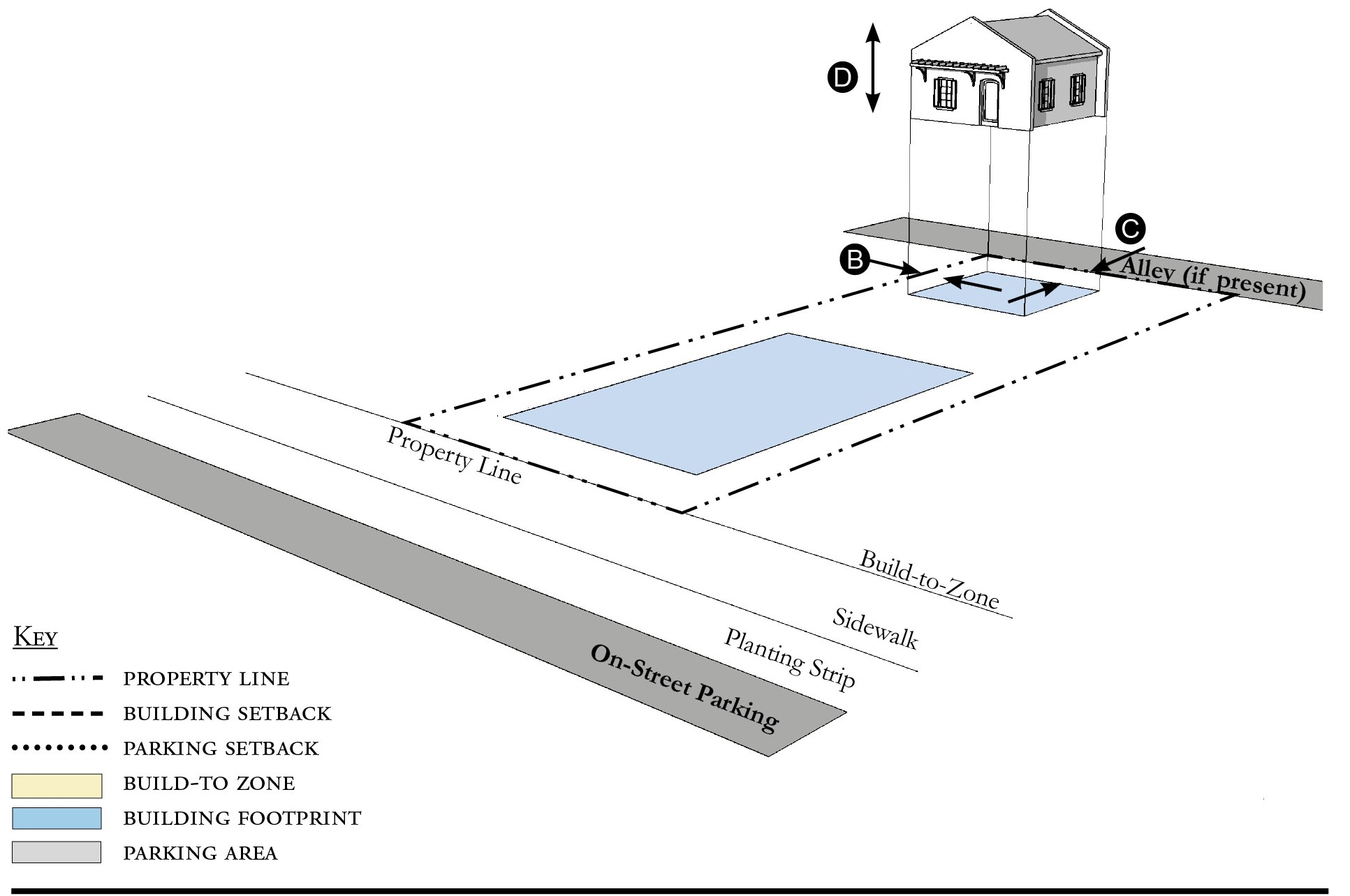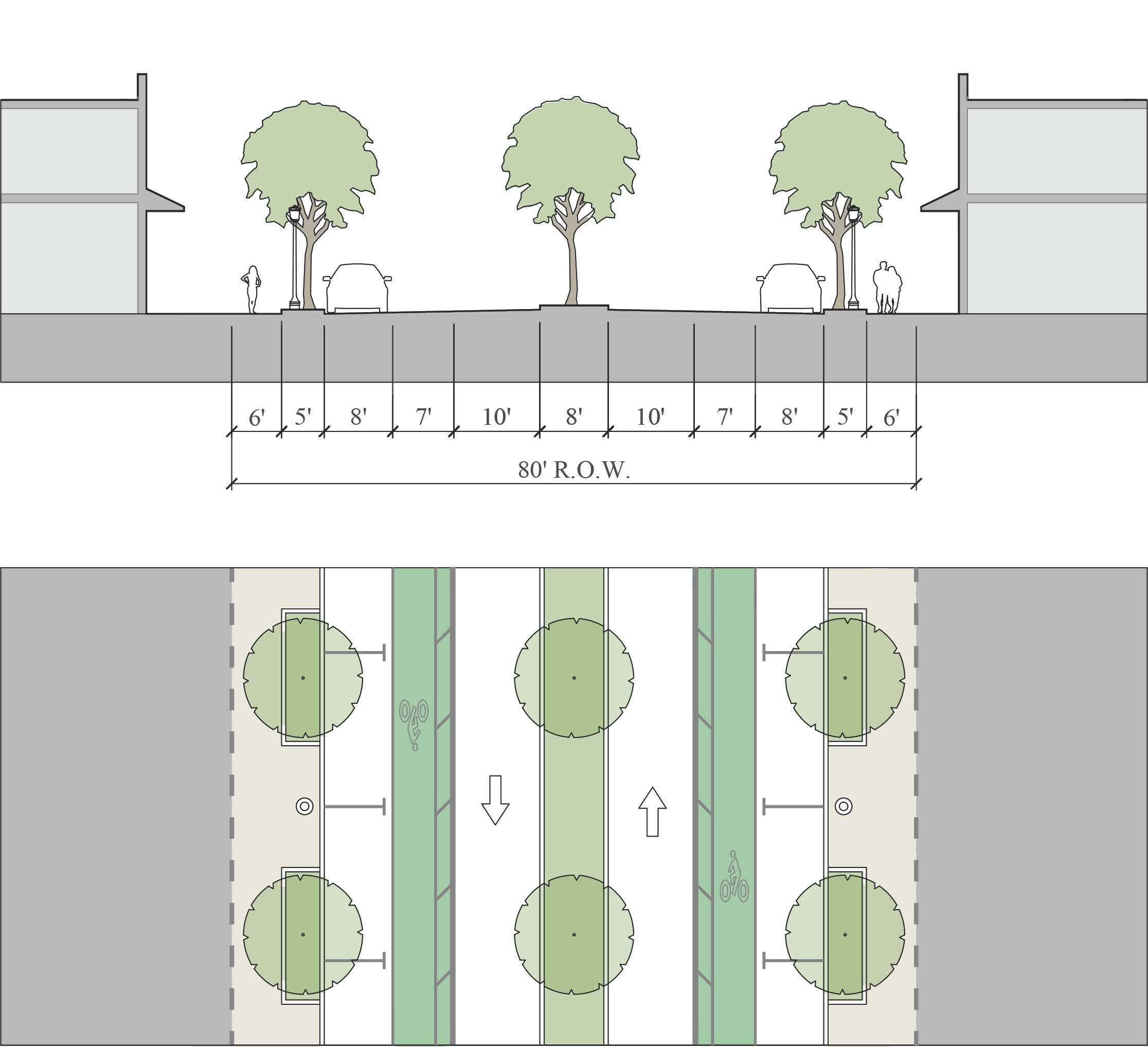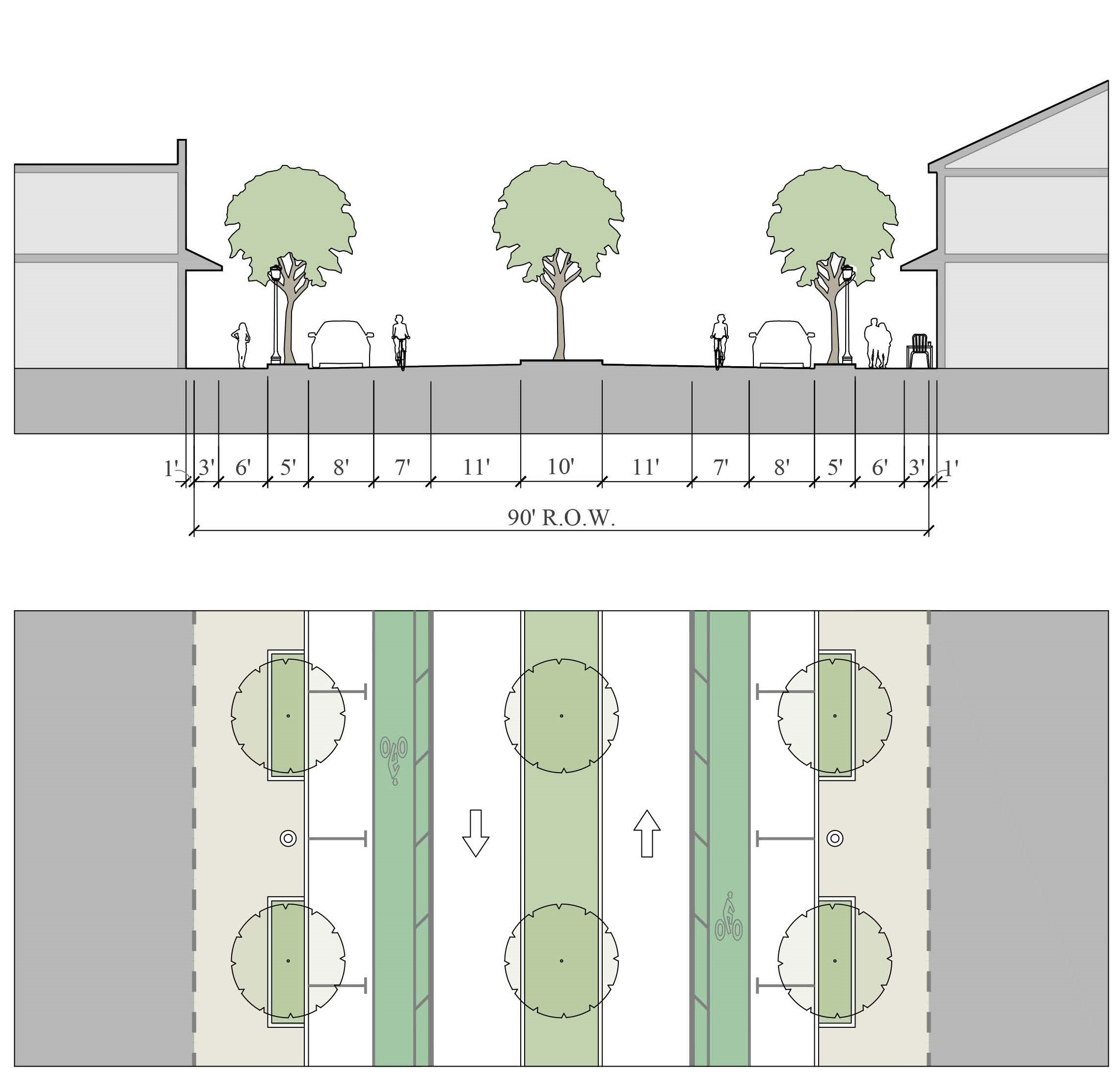 Alleys are important assets in the Redevelopment Zoning Districts, performing many functions within small rights-of-way. Alley rights-of-way should be retained and improved whenever feasible.