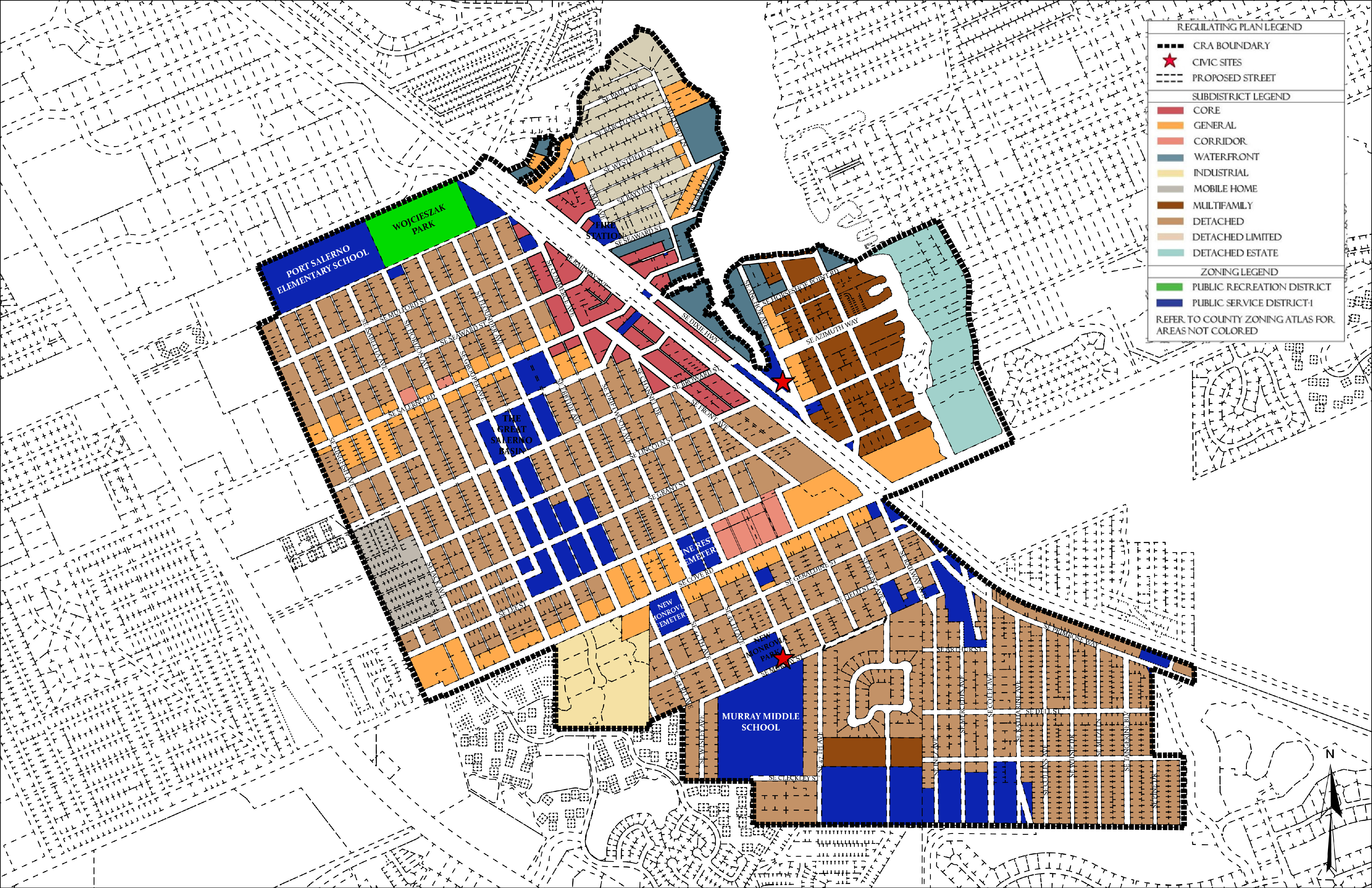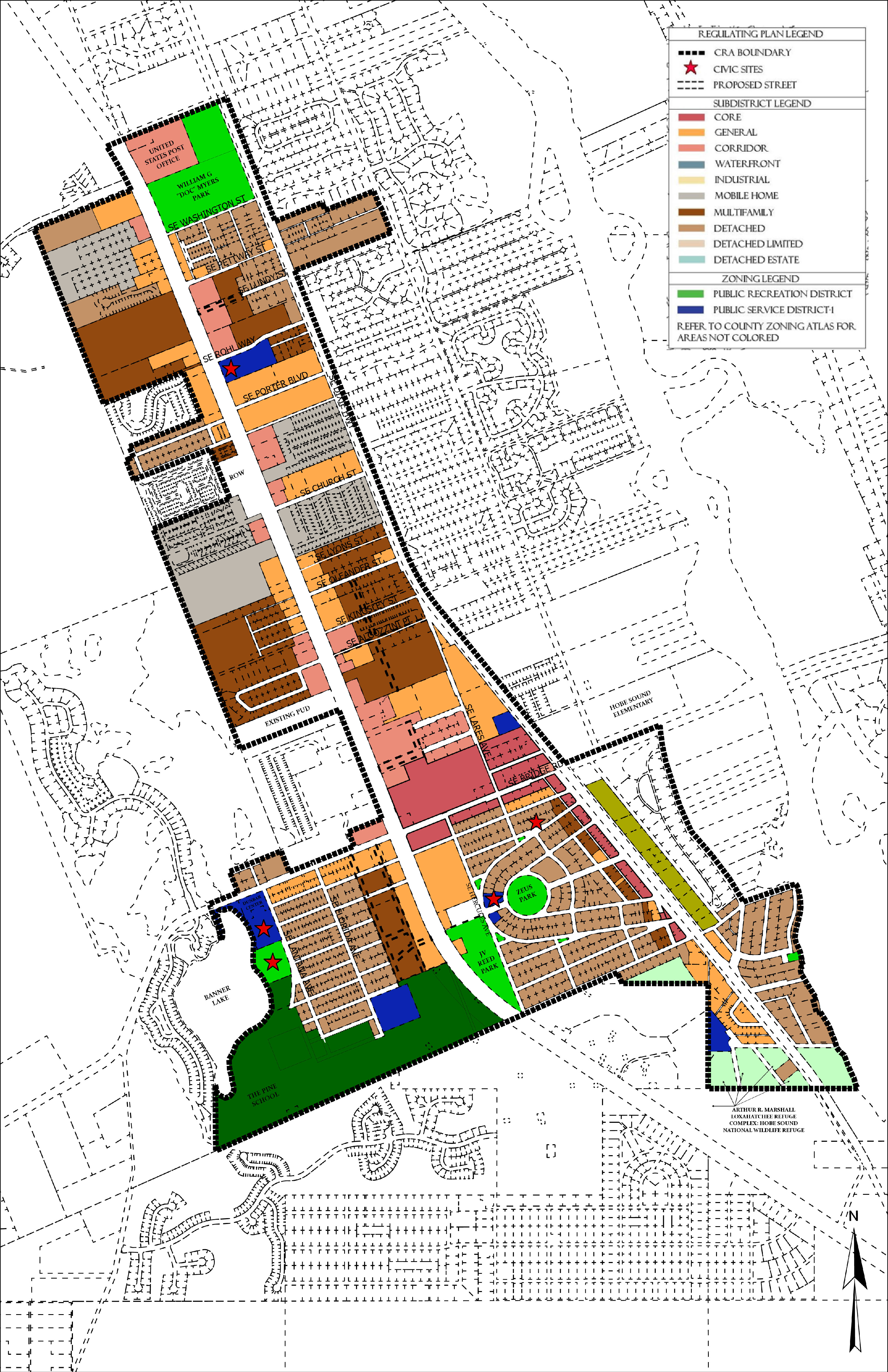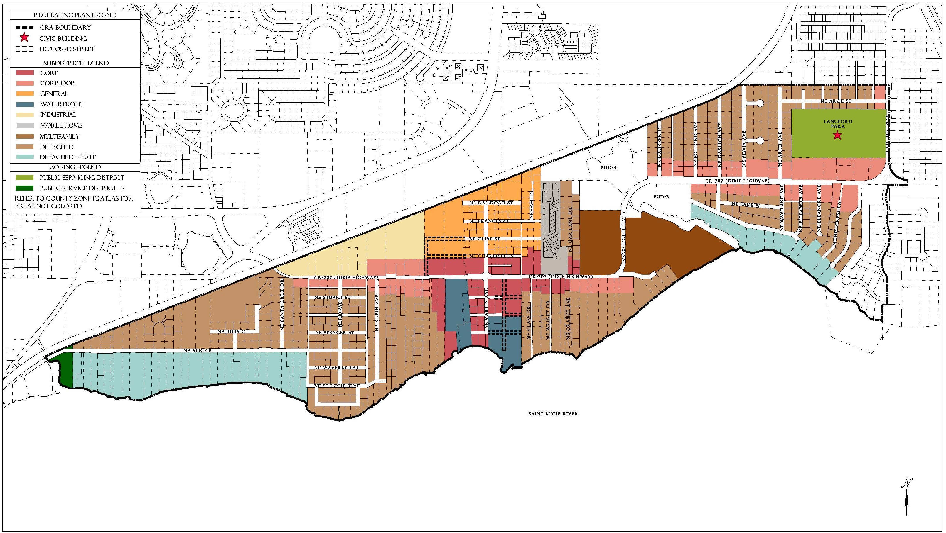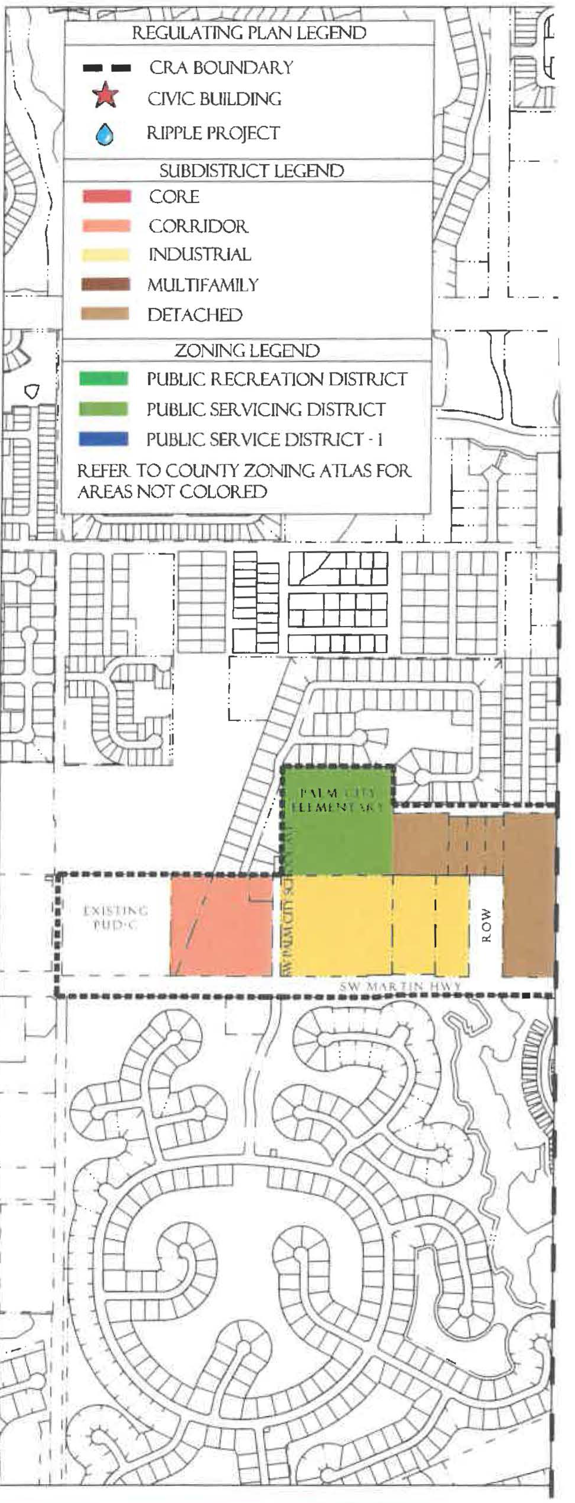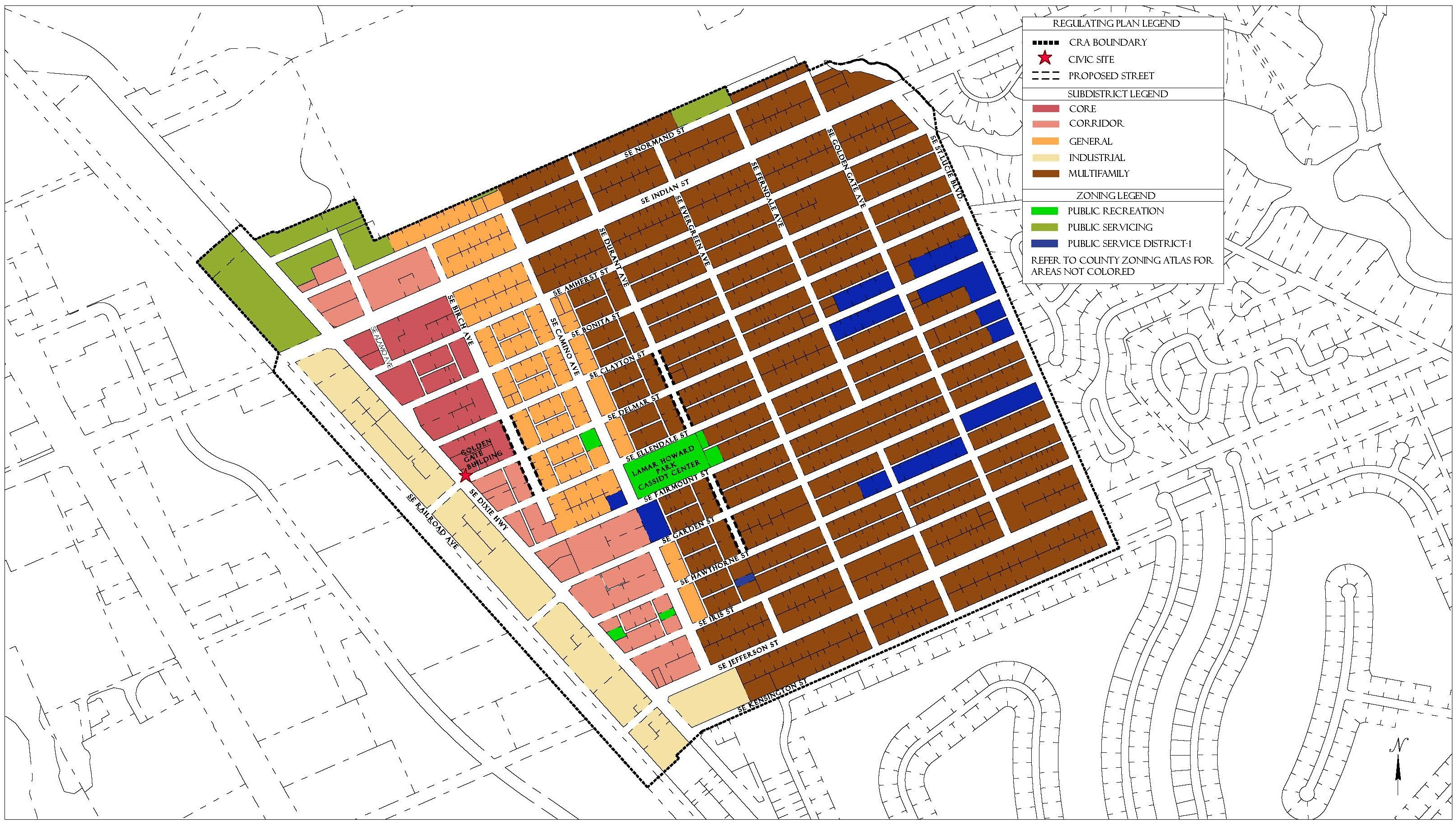 Subdistricts. All land in a Redevelopment Zoning District is assigned to a Subdistrict that provides regulations for the characteristics and location of that land. Subdistricts are designated on the regulating plans. Some land within the CRA remains outside of the Redevelopment Zoning District and therefore is not assigned a Subdistrict. Land with the General Institutional, Recreational, or Public Conservation Future Land Use designations retain Article 3 zoning districts. Additionally, some land that was developed pursuant to a Planned Unit Development Zoning Agreement or a final Site Plan retains its Article 3 zoning district, and remains governed by that district.