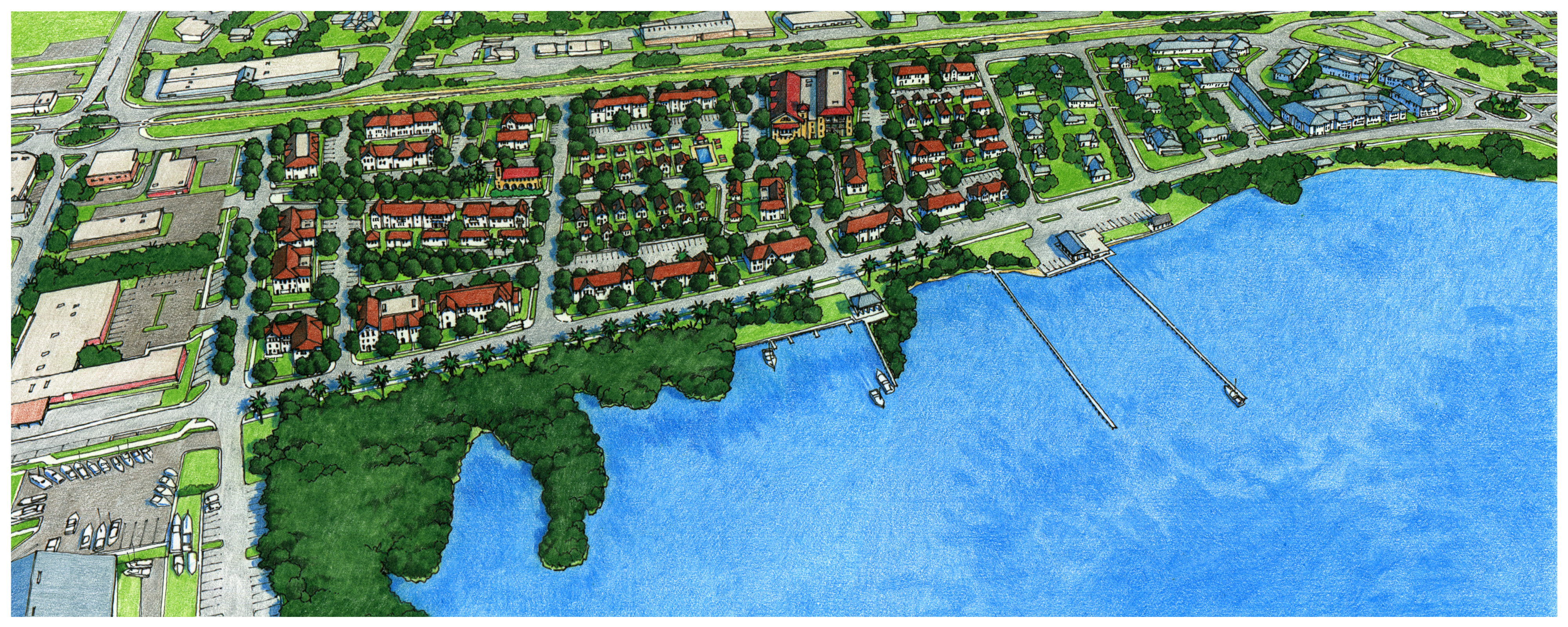 The Waterfront Subdistrict is defined by marinas and working waterfronts. It also promotes a mixed-use waterfront environment with restaurants, entertainment, resort and residential uses.