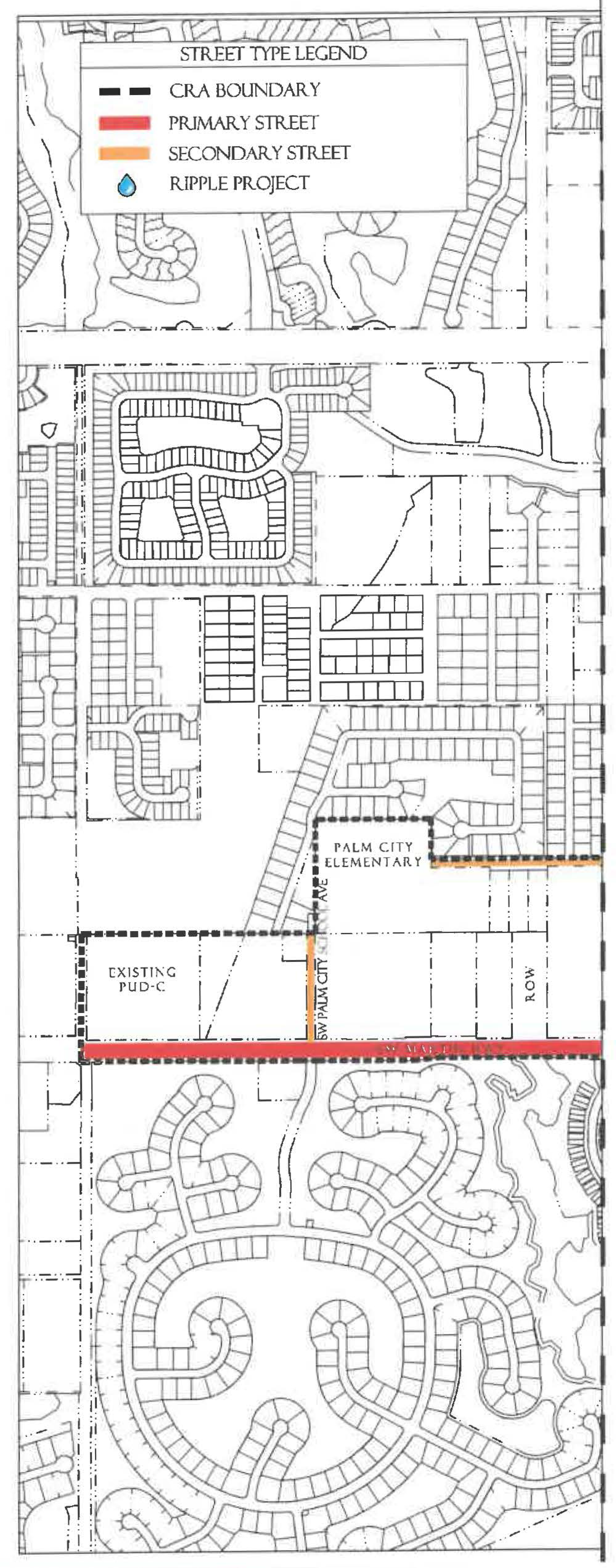 Primary Streets are intended to develop over time as pedestrian friendly environments and, as such, are held to higher standards regarding building placement, building frontage, and the location of parking and service uses. Primary Streets allow movement through, as well as, within Redevelopment Zoning Districts.