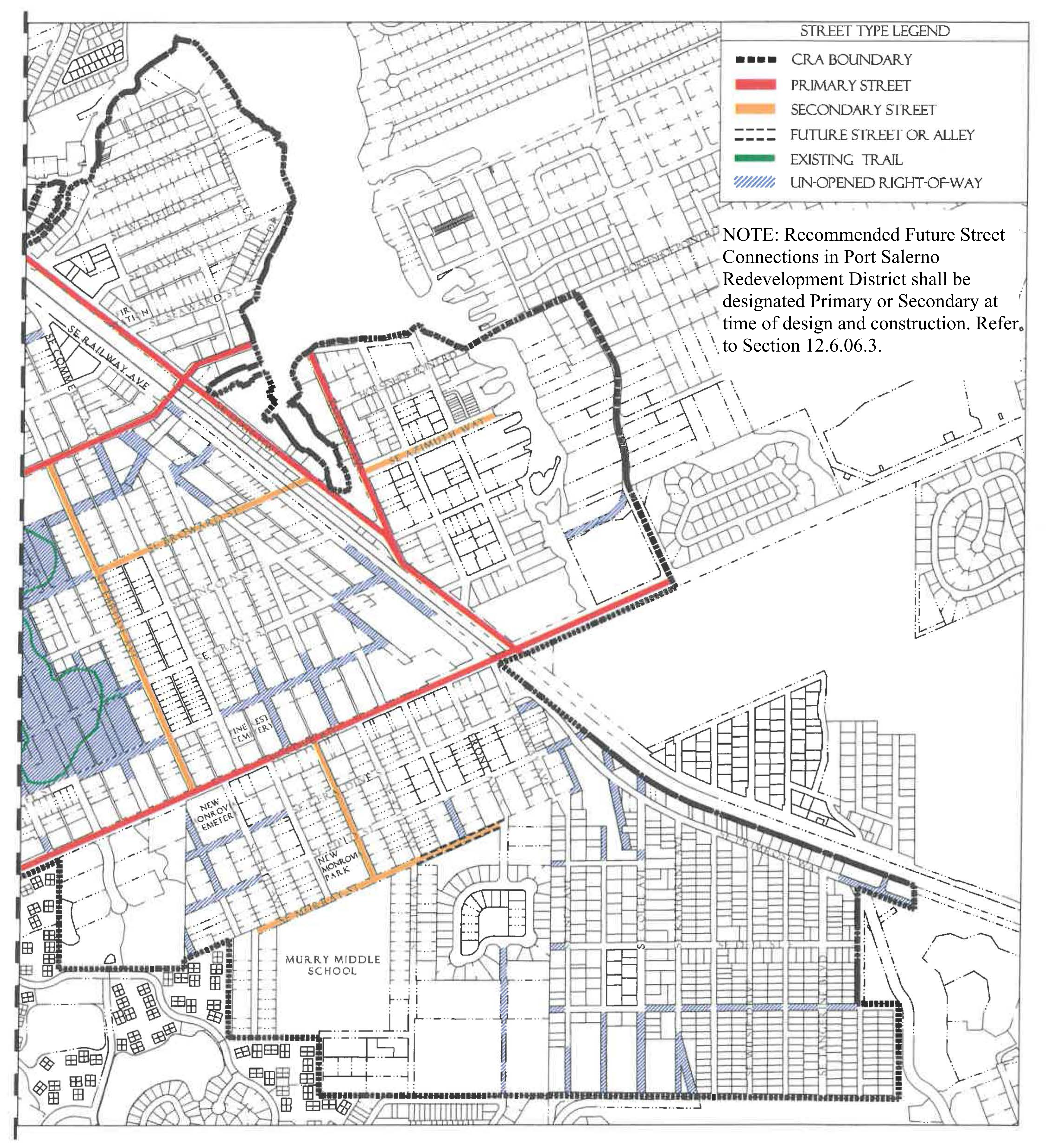 Recommended Future Street and Alley Connections. Potential future street and alley connections may also be illustrated on Regulating Plans and Street Regulating Plans. Future connections are desired new vehicular or pedestrian connections to existing streets or alleys that will improve the overall transportation network. Future connections are not precise alignments or specific locations. The final street designations, exact alignment, location, maintenance responsibility and dedication of these intended links of the transportation network will be determined during the development review and approval process.
