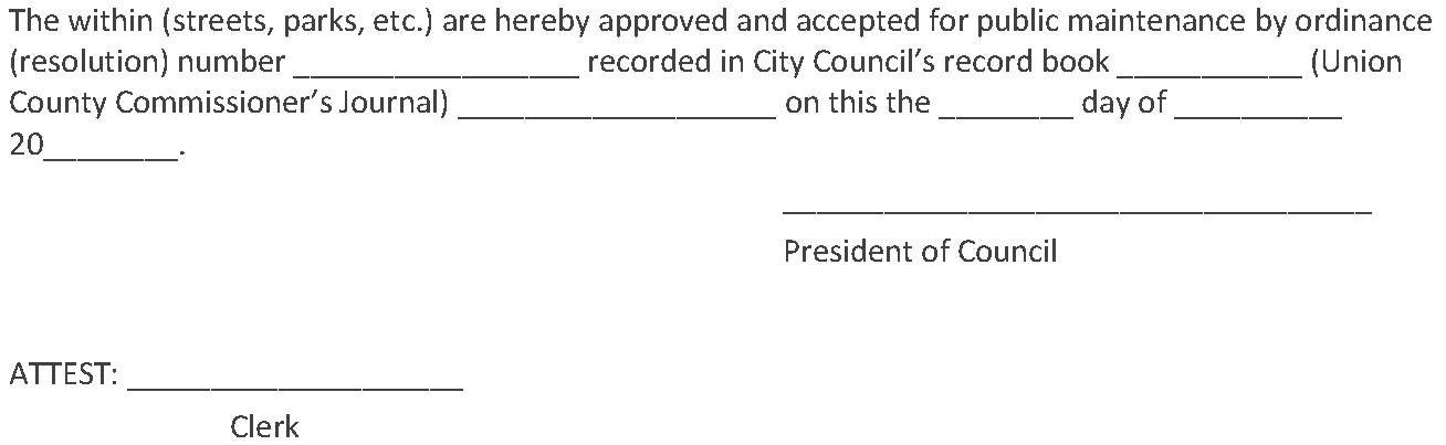 No plat of any subdivision shall be recorded by the County Recorder of Union County or have any validity until such plat has received final approval in the manner prescribed in these regulations. In the event any unapproved plat is recorded, it shall be considered invalid and Council shall institute proceedings to have the plat stricken from the records of the County.