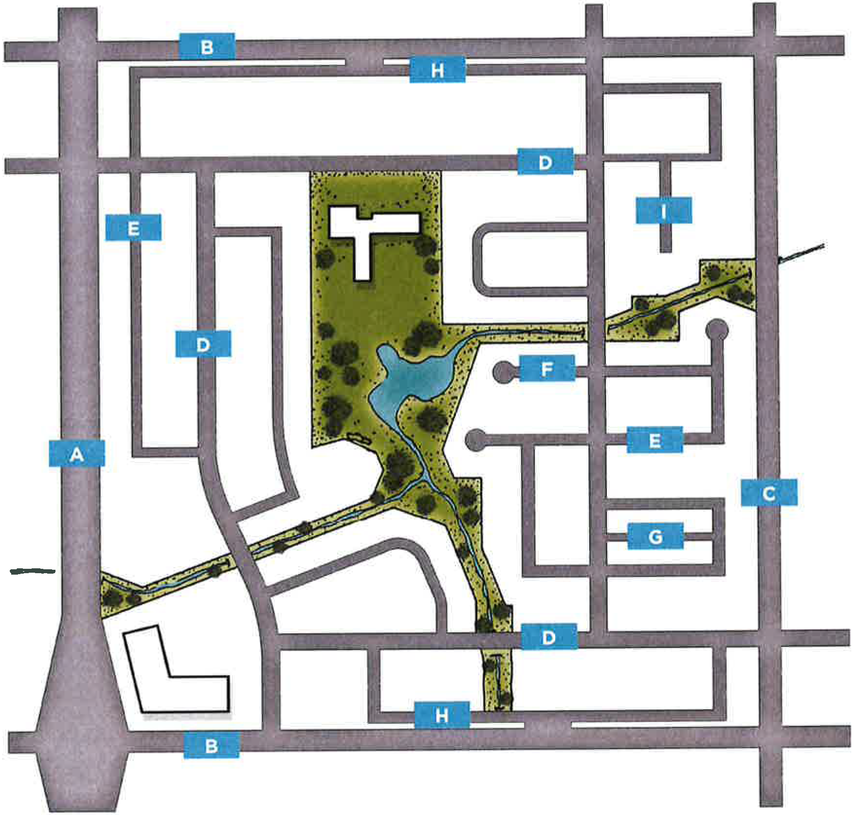 Street lighting including poles, underground conduits and appurtenances at intersections and along the street are required;