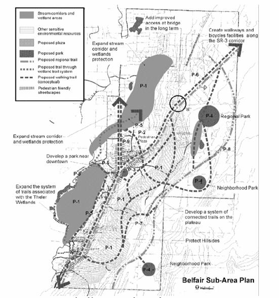 New developments should be integrated with and expand upon the existing and planned Belfair UGA trail network. To implement this guideline, the county may require that the pedestrian walkway(s) of a development provide connections to an adjacent trail system, if there is one.