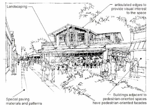 A "pedestrian-oriented space" may have and is encouraged to have the following features: