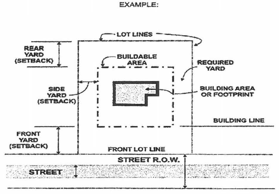 Yard, Required. The open space between a lot line and the buildable area within which no structure may be located except as otherwise provided in this ordinance. All yards referred to in this ordinance are minimum required yards.