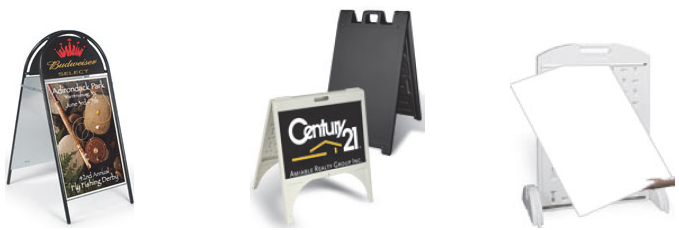 A-frame Sign (also known as a Sidewalk or Sandwich Board sign). A self-supporting, portable sign with one (1) or two (2) faces that are adjoined at the top and displayed at an angle, which is not permanently anchored or secured.