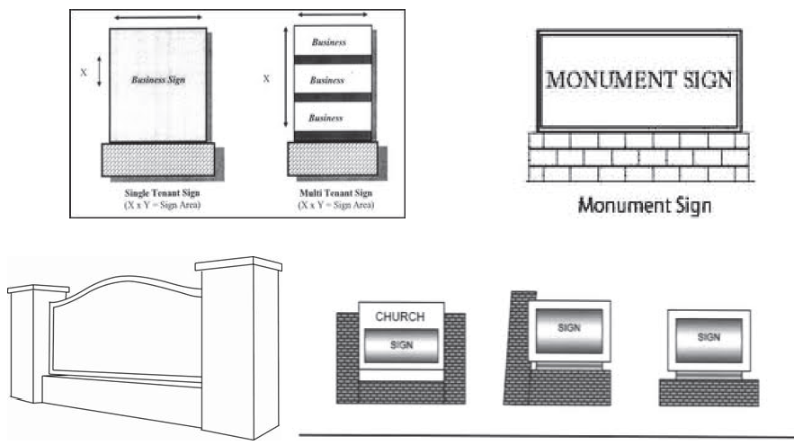 Dimensional Requirements, Sign. Those measurements that contain the area, height and spacing requirements for signs.