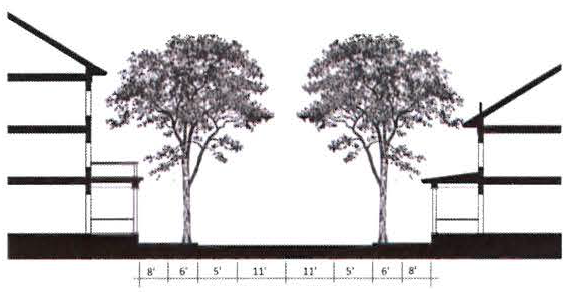 Landscaping shall generally be provided in accordance with the provisions set forth in Section 6:2, Landscape and Design Standards, except that large maturing deciduous street trees shall be provided along all public streets, spaced at thirty-foot maximum intervals.