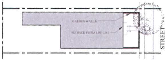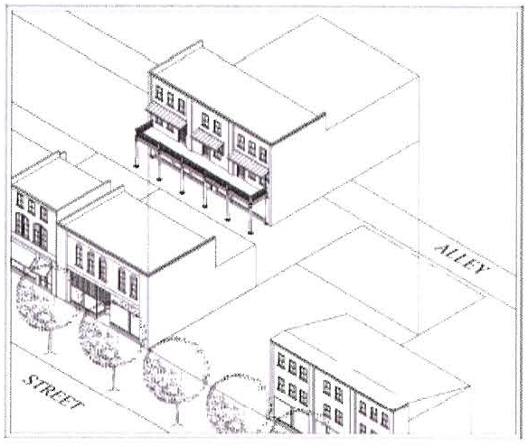 Front and Corner Setbacks. Principal structures shall be built to the front property line and shall not be set back more than fifteen (15) feet from the front property line, except to accommodate for a plaza, forecourt or outdoor dining area.