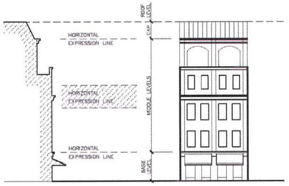 Façade openings which face any public right-of-way or open space shall be vertically and horizontally aligned and the floor fronting on such façades shall be level.