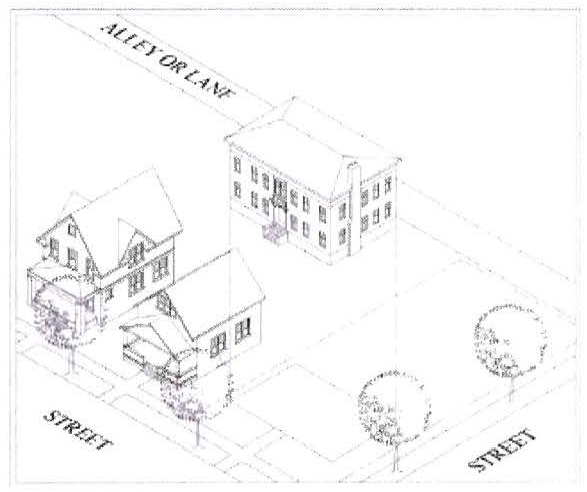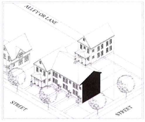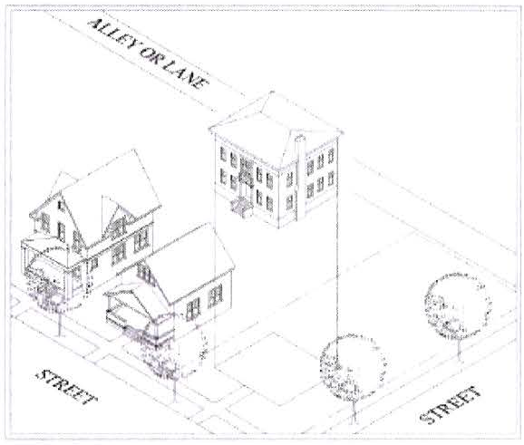 Building Orientation. In order to protect the residential character of this district, the main entrance of each principal building shall face the adjacent street. On corner lots, the main entrance may face either of the streets or be oriented to the corner. For buildings that have more than one main entrance, only one entrance must meet this requirement.