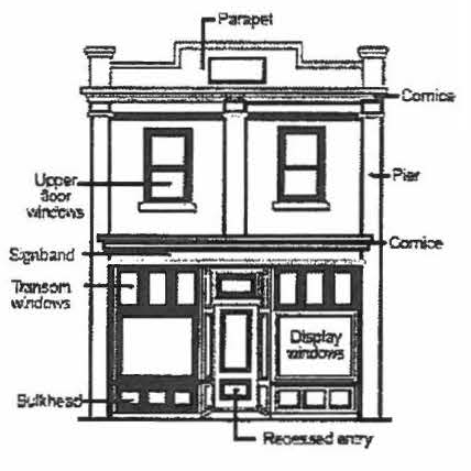 To promote legibility by pedestrians, it is generally better to mount projecting signs and hanging signs below the second floor window sill on multi-storied buildings.
