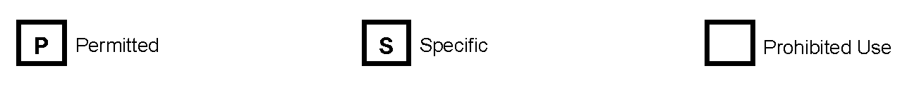 The following table presents the zoning district classifications and the permitted uses within those classifications. Uses are listed as being "Permitted", permitted by "Specific Use Permit", and prohibited uses as signified by blank cells. Conditions are provided in Section 2.4, Conditions and Special Regulations for Listed Uses. Any use not expressly authorized and permitted herein is expressly prohibited.