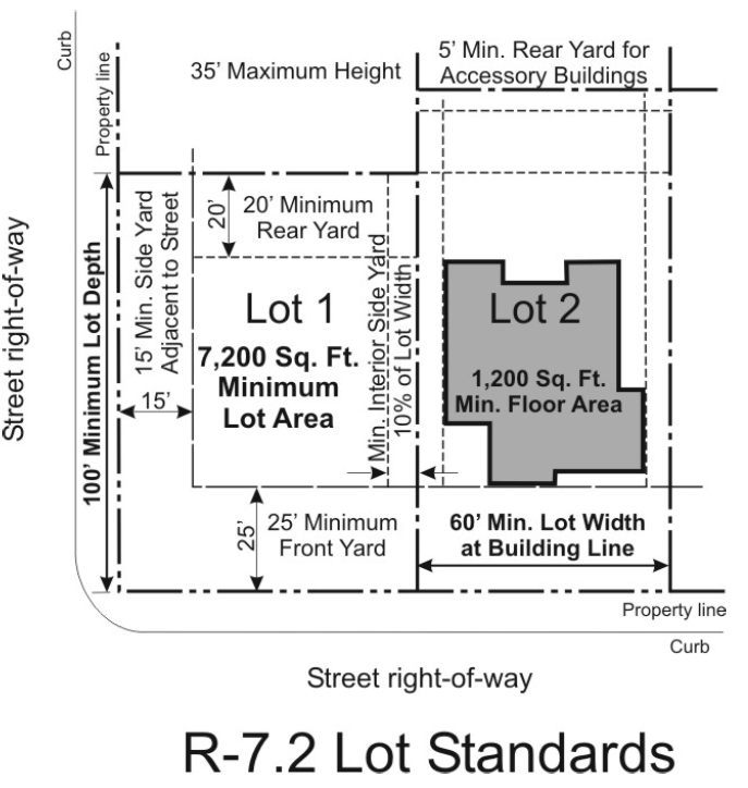 "R-7.2" Single Family Residential District (7,200 sq. ft. lot minimum)