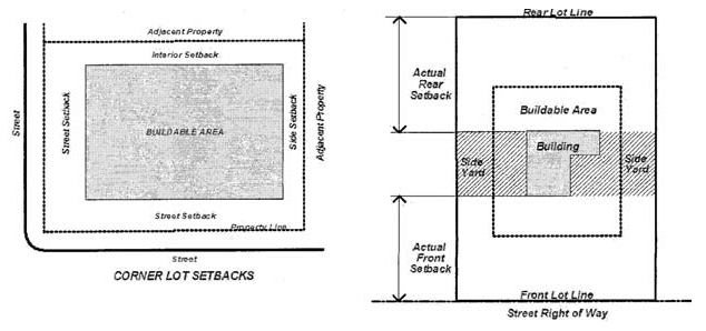 Figure 3.2 Corner Lot Setbacks and Figure 3.3 Measurements of Setbacks