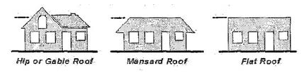 Measurement. The building is measured from the average of finished grade at the center of all walls of the building to the top of the parapet or highest roof beam (whichever is higher) on a flat or shed roof, to the top of the parapet or deck level (whichever is higher) of a mansard roof, or the average distance between the highest ridge and its eave of a gable, hip, or gambrel roof.