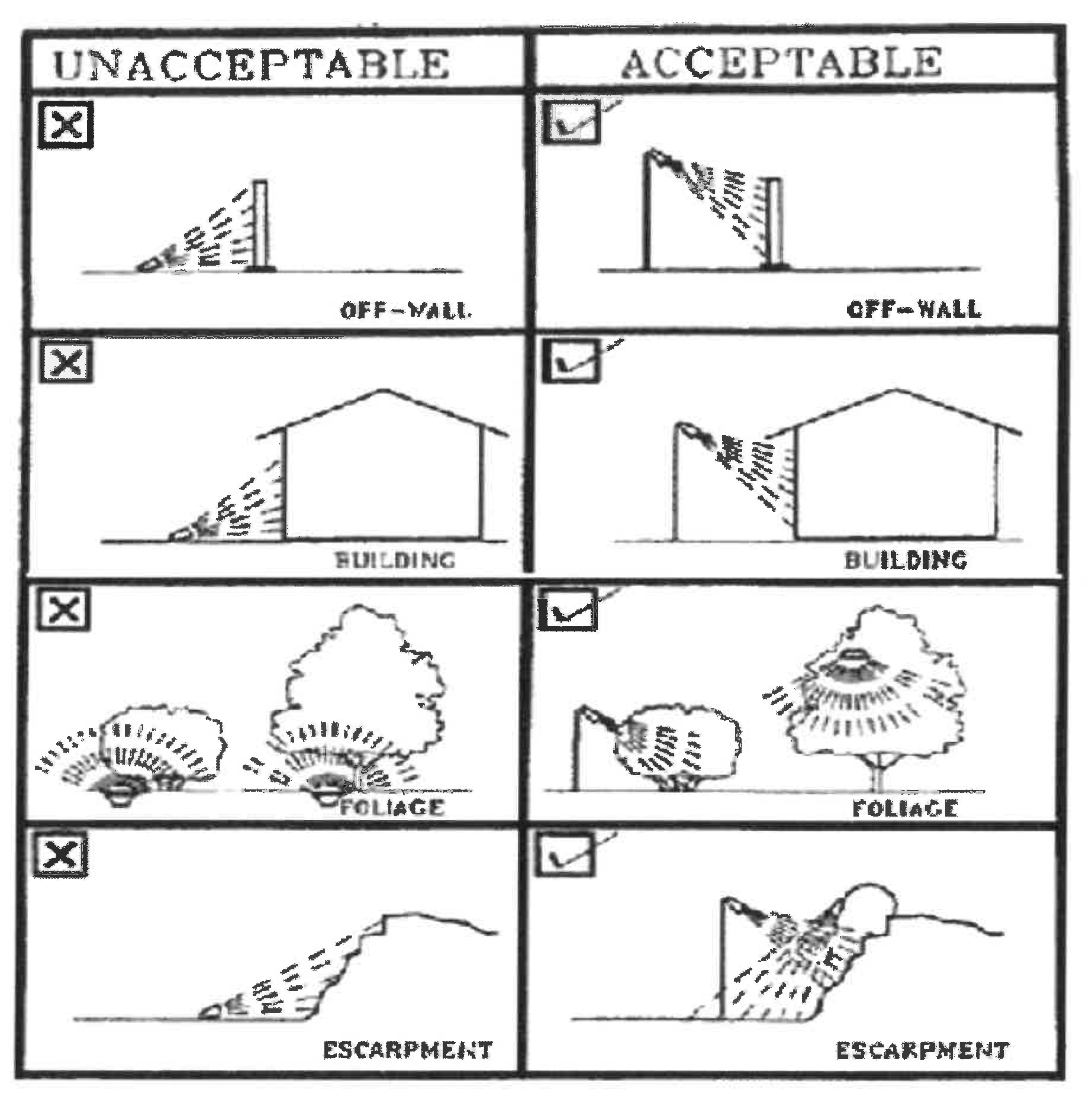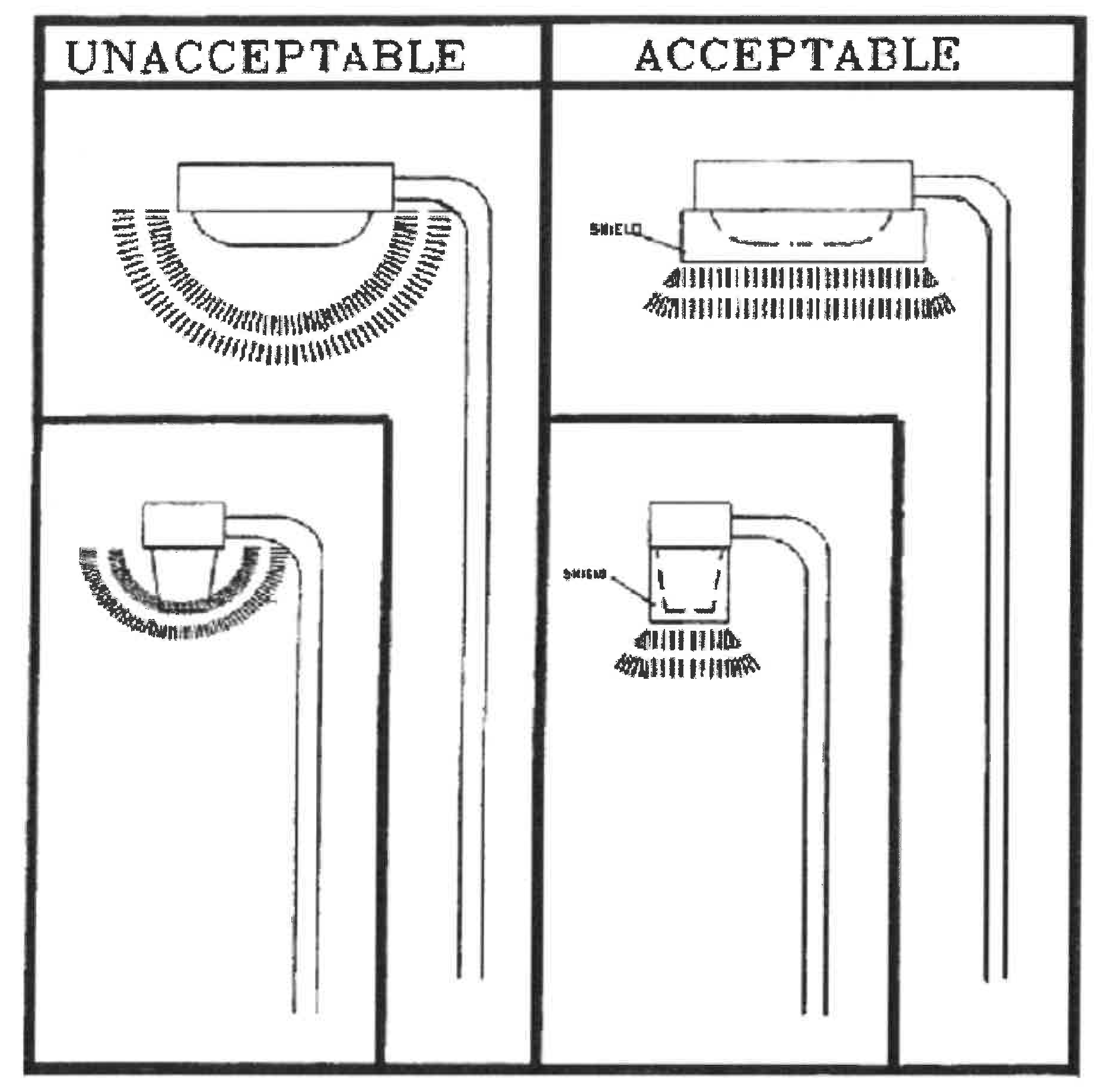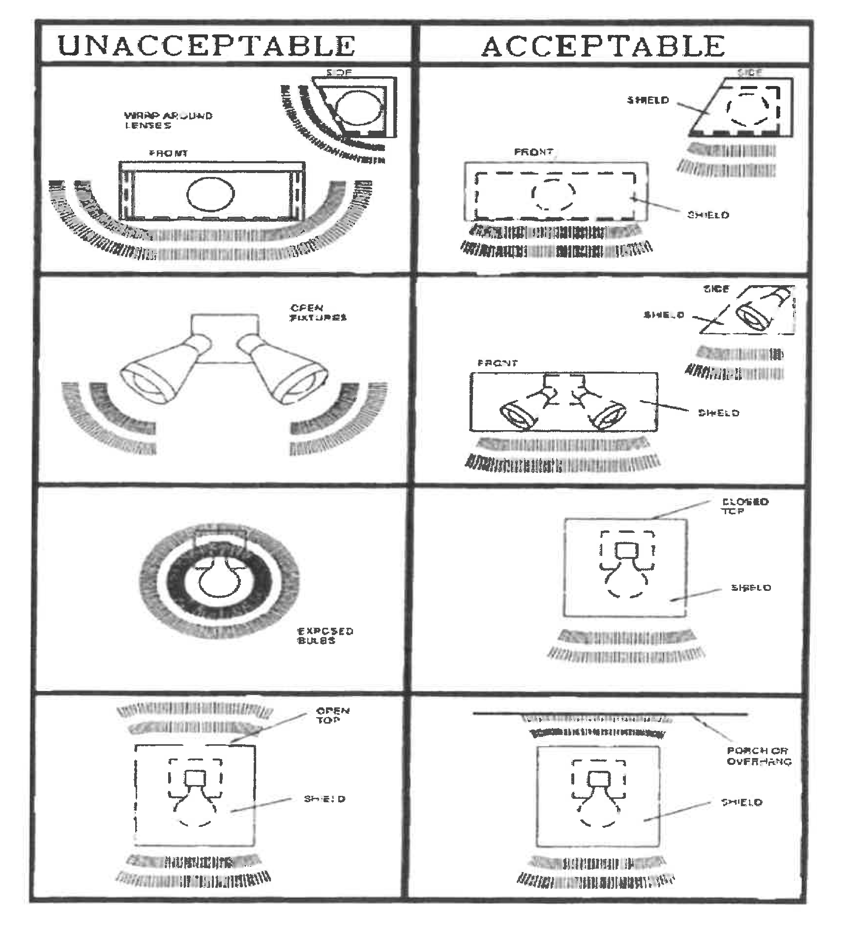 The following four figures illustrate acceptable and unacceptable outdoor lighting fixtures in the city:
