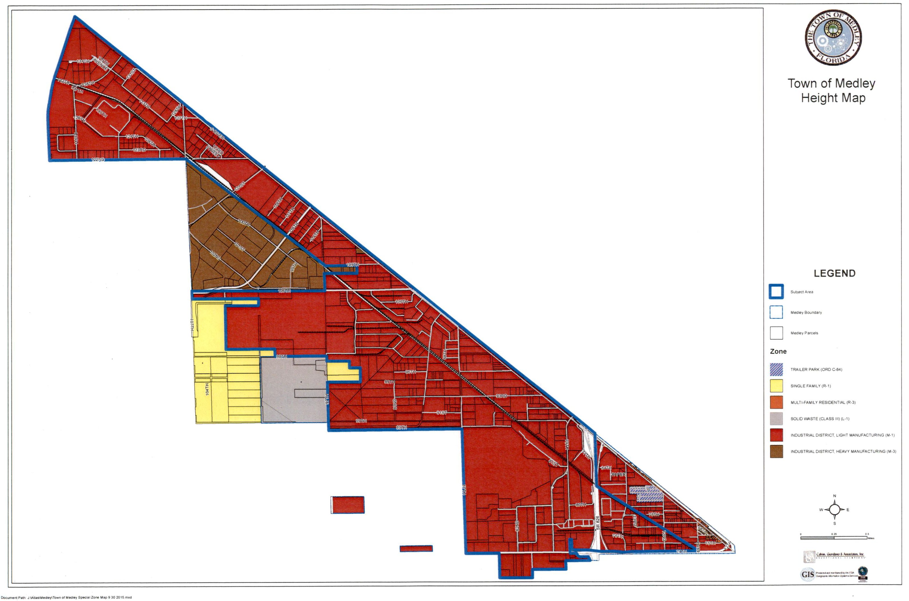 Solid Waste Facilities Overlay District shall mean properties in the Town of Medley within the area depicted on the Solid Waste Facilities Overlay District Map attached as Exhibit 1 to the ordinance that this section derives.
