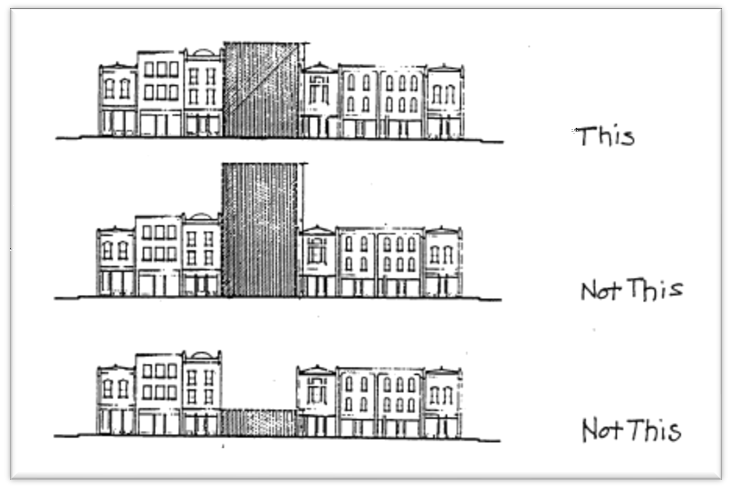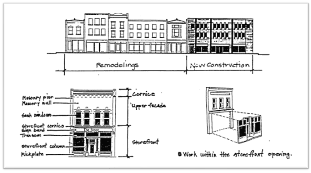 Architectural regulations. Architectural regulations shall be produced as a matrix with text and drawings that regulate configurations, materials, and techniques of construction. The regulations are intended to produce harmony among buildings, control materials, and encourage new buildings to relate to the geographical history and climate of the area.