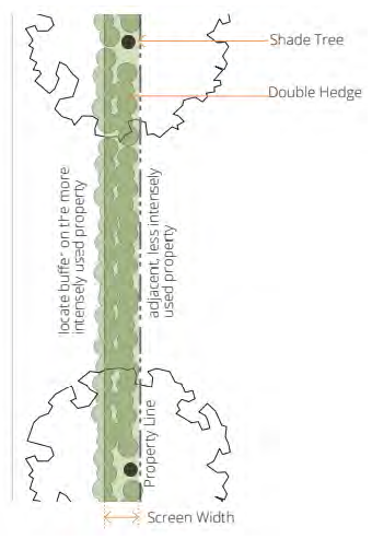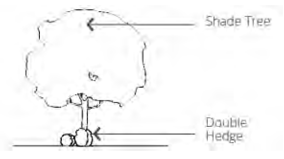 Hedge. A continuous double row of shrubs is required between shade trees.