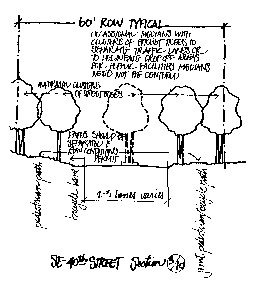 Of particular concern is the lack of landscaping in that portion of the East Mercer right-of-way directly adjoining the Mercerwood Shore Club, which is currently entirely paved and in need of a generous planting buffer in order to screen the pavement expanse of the Club's tennis courts directly below the right-of-way.