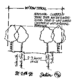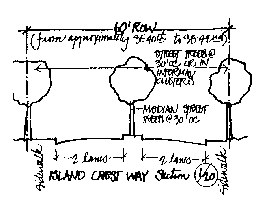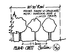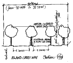 Consider the use of median and planter strip trees along Island Crest at approximately 30 feet on center from SE 40th to the I-90 interchange with particular care given to the appearance of the roadway from the adjoining apartment community as well as the preservation of the existing views to Lake Washington both from the roadway and the adjoining apartments.