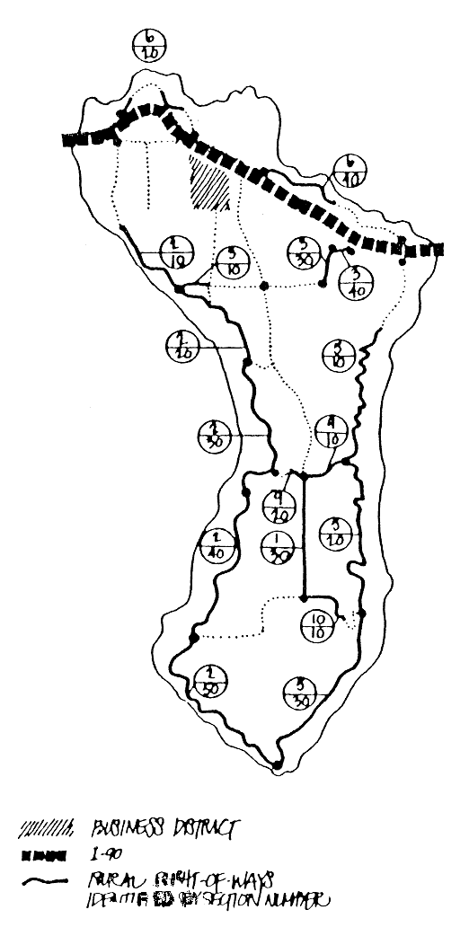 These arterials have also been assigned route and section numbers by the Public Works Department which are recognized by the Urban Arterial Board, as well as an arterial designation of major, secondary, and collector. However, since the guidelines deal chiefly with visual characteristics of the right-of-way, the arterial section designations have been introduced primarily as a means of reference. Diagrams keying the classification are found with the corresponding guidelines under rural, suburban, and urban right-of-way headings.