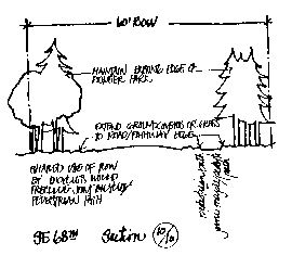 The suburban rights-of-way pass through fairly dense residential communities d are characterized by closely adjoining housing, uniform front yard setbacks, individual driveways, and a lack of continuous vegetation buffers. This category includes SE 40th, SE 24th, 72nd SE, 78th SE, Island Crest from SE 40th to SE 53rd Place, a portion of SE 53rd Place, 84th SE, SE 68th and SE 72nd, SE 70th Place, Merrimount Drive, and portions of the Mercer Ways.