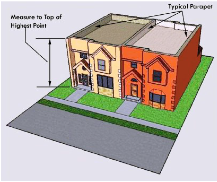 FIGURE 11-2-3.E.2: MEASURING HEIGHT FLAT ROOF WITH PARAPET