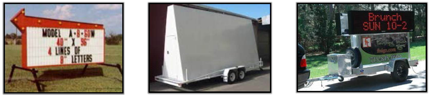 FIGURE 11-50-6-A to C: EXAMPLES OF PORTABLE MESSAGE CENTER SIGNS