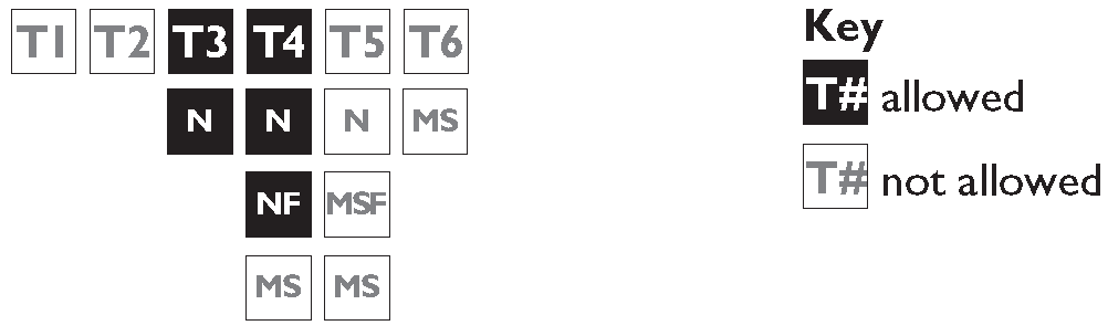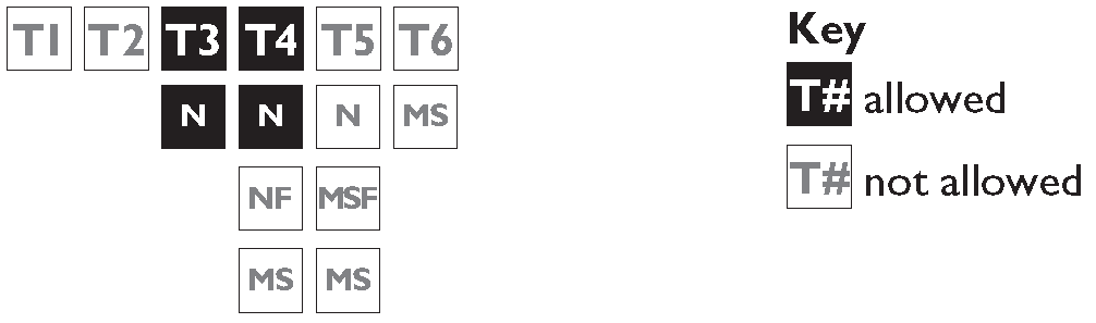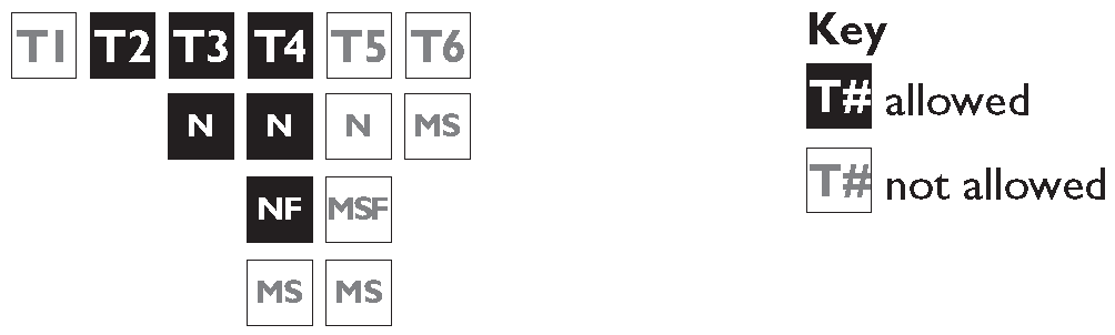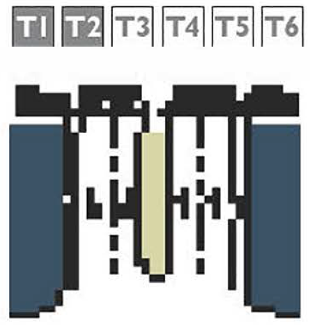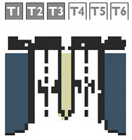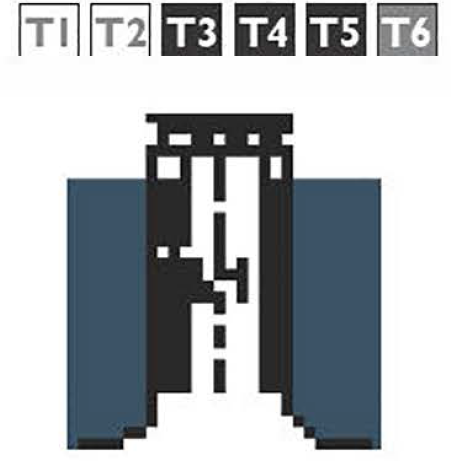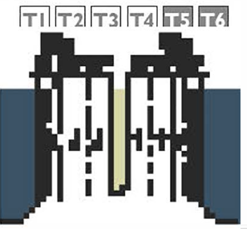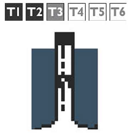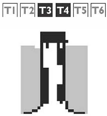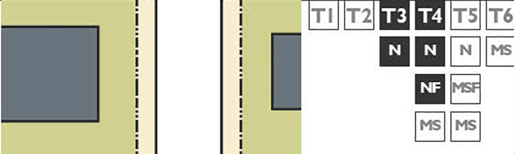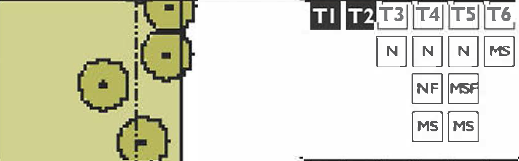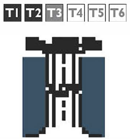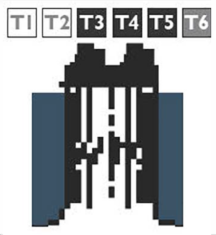 The model transect for American cities is divided into six transect zones or T-zones: Natural (T1), Rural (T2), Sub-urban (T3), General Urban (T4), Urban Center (T5), and Urban Core (T6), together with a Special District (SD) designation for areas with specialized purposes (e.g., heavy industrial, transportation, entertainment, or university districts, among other possibilities).