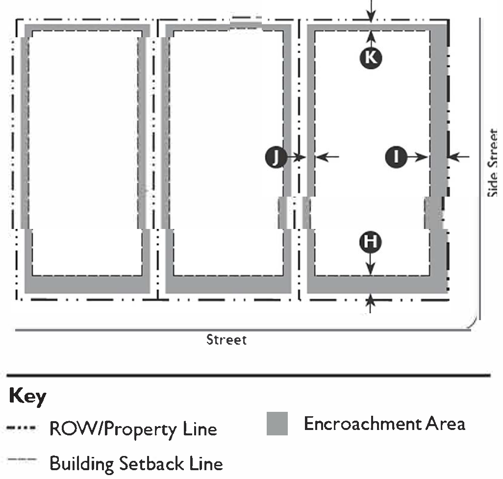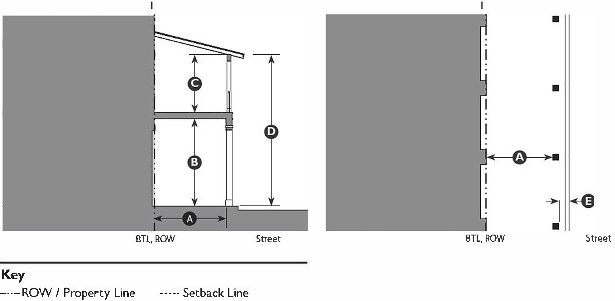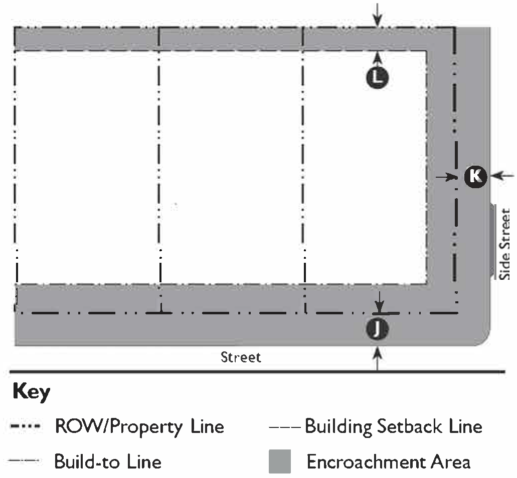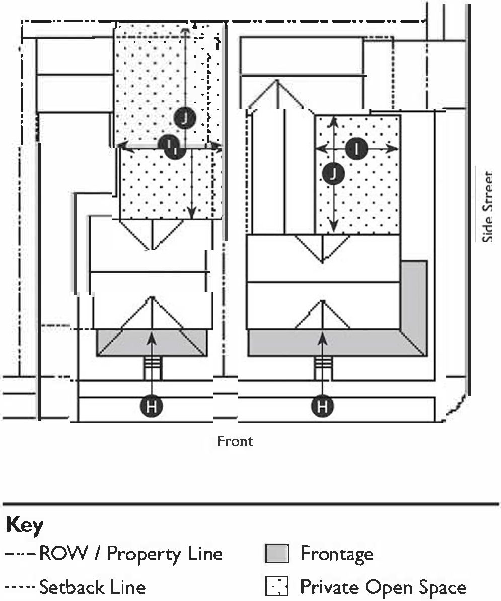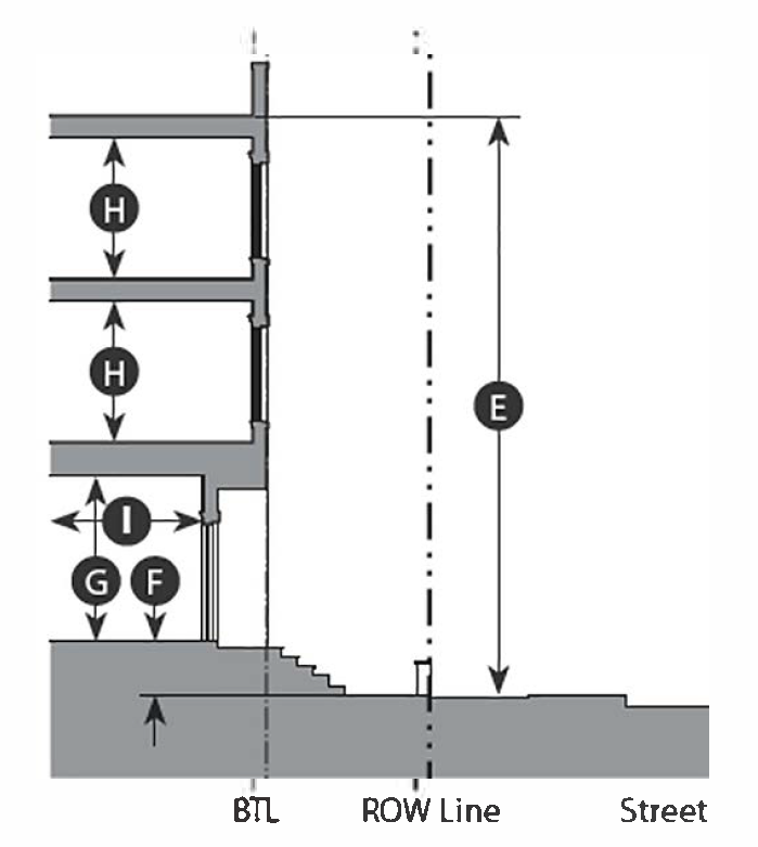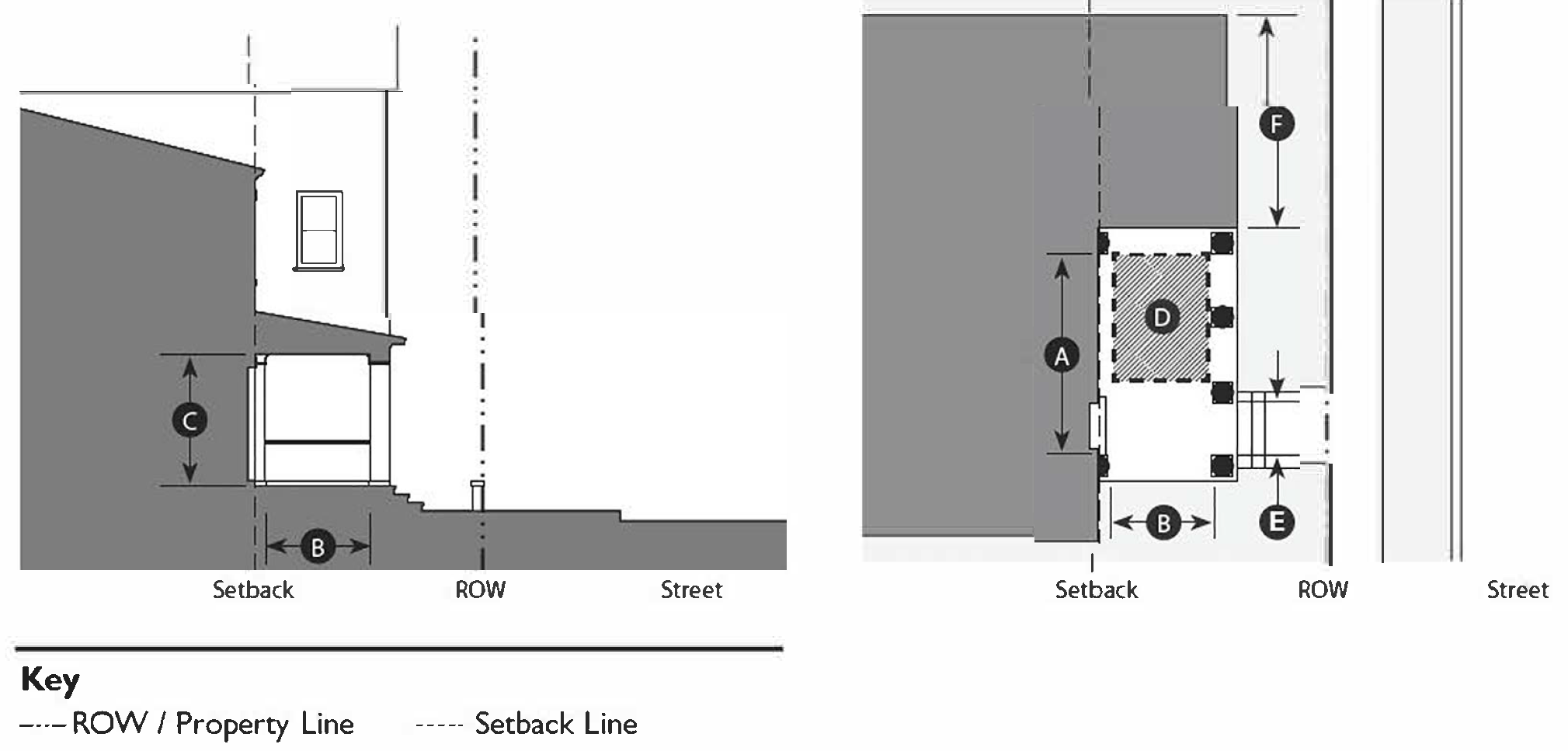 The Private Frontage Standards Chapter supplements the Building Form Standards by setting forth the standards for the components of a building that provide an important transition and interface between the public realm (street and sidewalk) and the private realm (yard or building). See Chapter 60 (Private Frontage Standards).