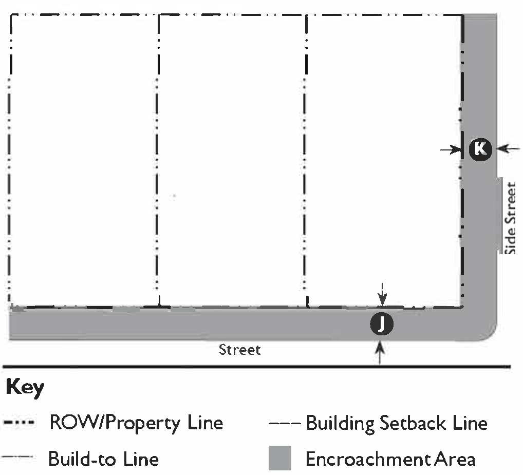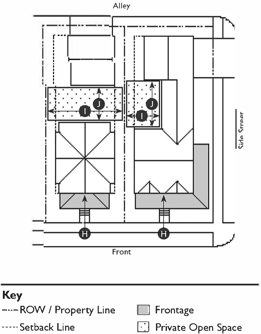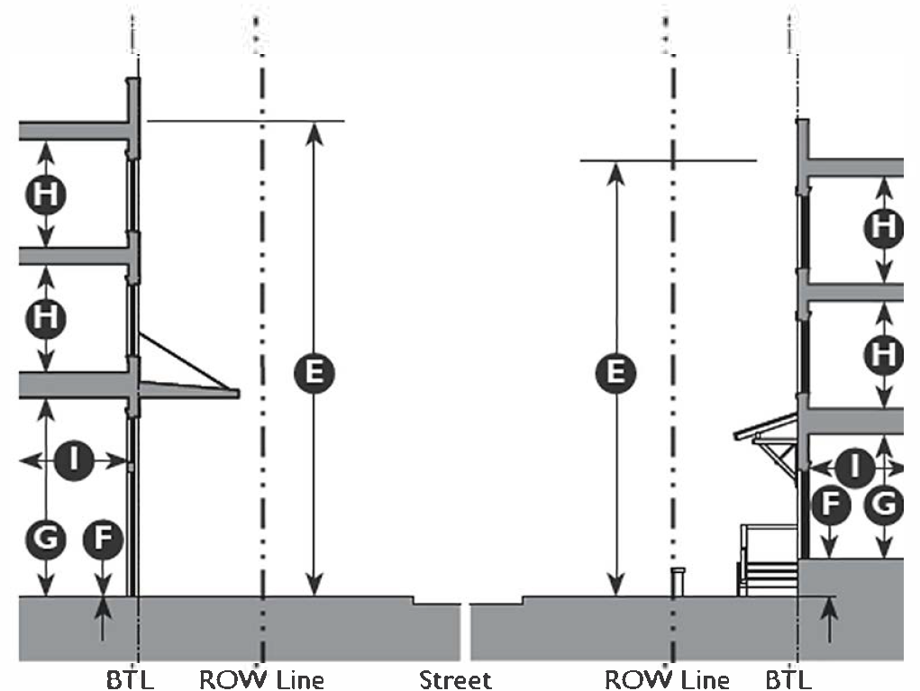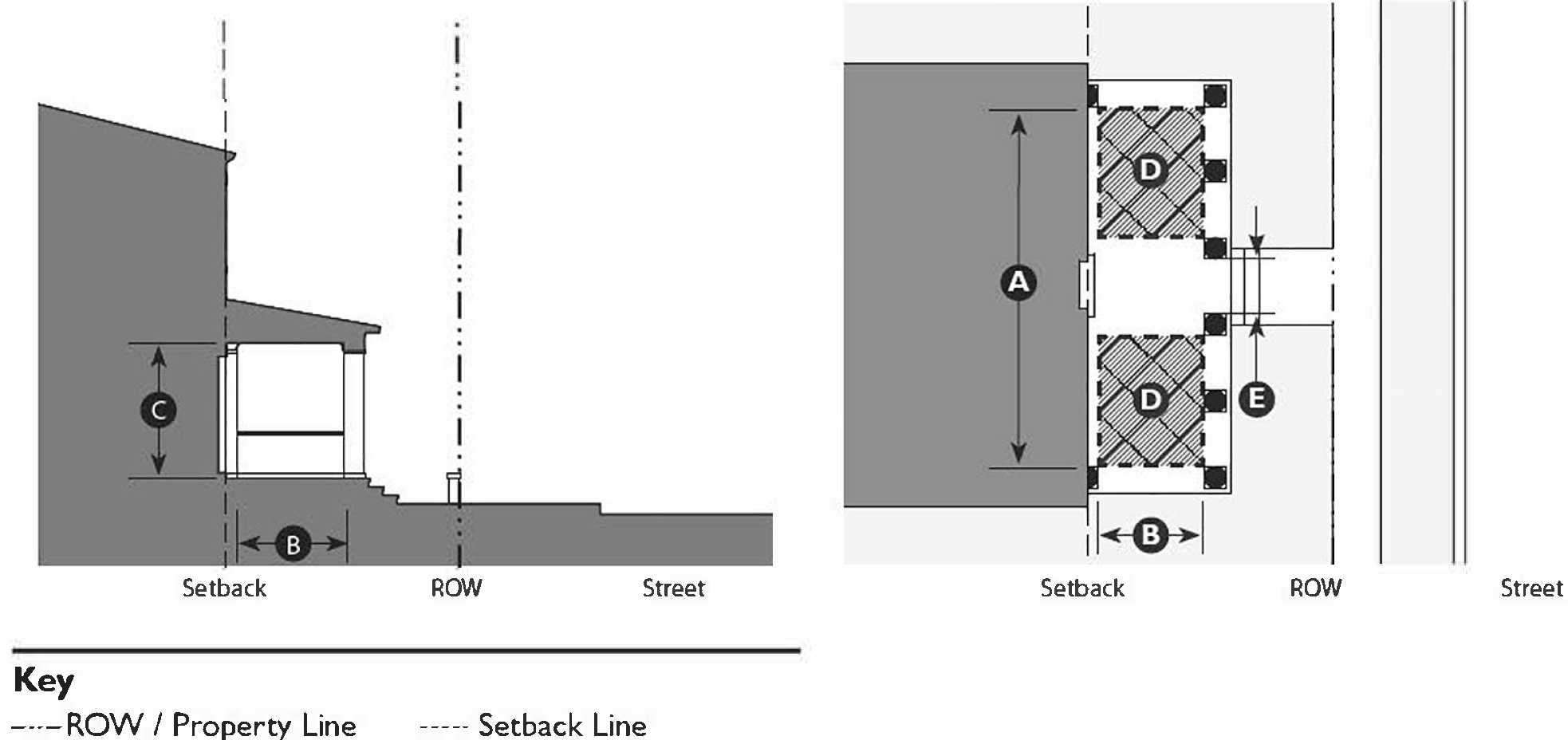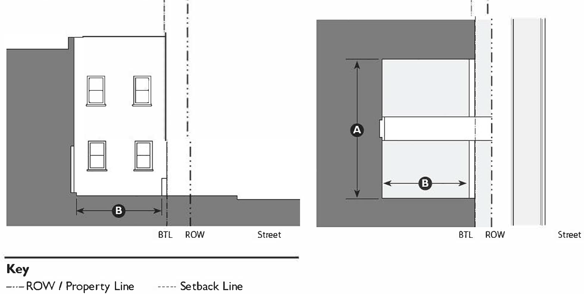 The Private Frontage Standards Chapter supplements the Building Form Standards by setting forth the standards for the components of a building that provide an important transition and interface between the public realm (street and sidewalk) and the private realm (yard or building). See Chapter 60 (Private Frontage Standards).