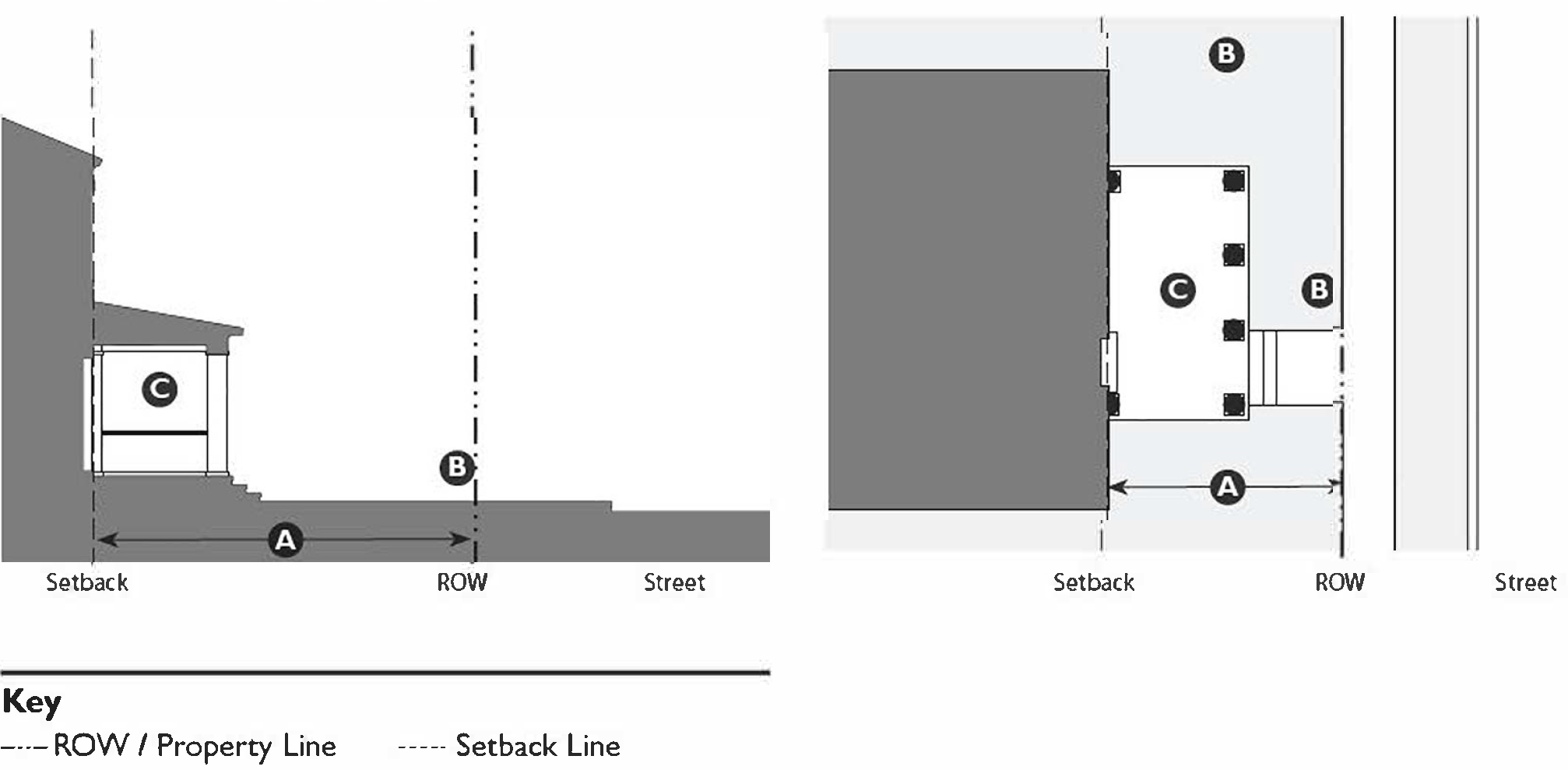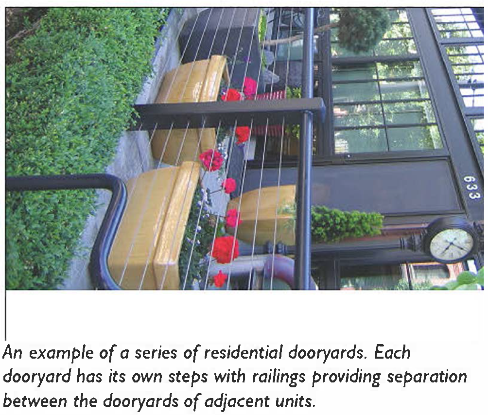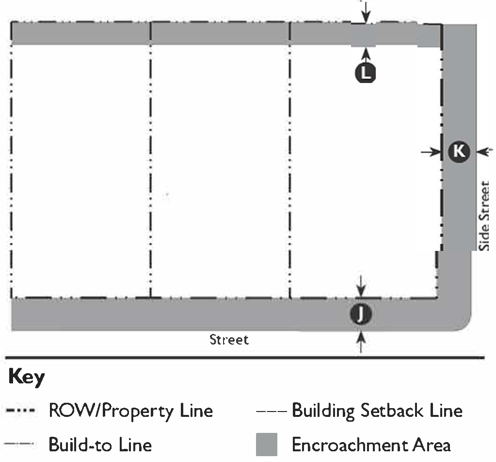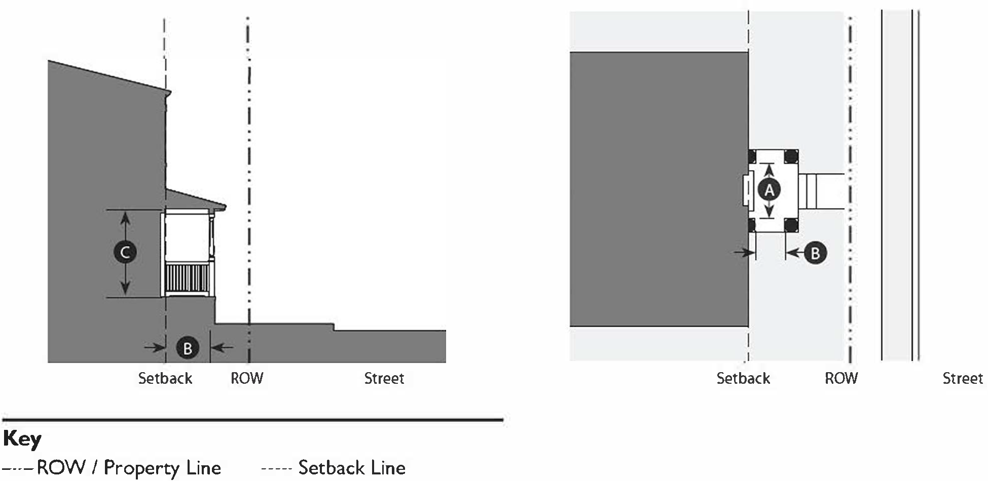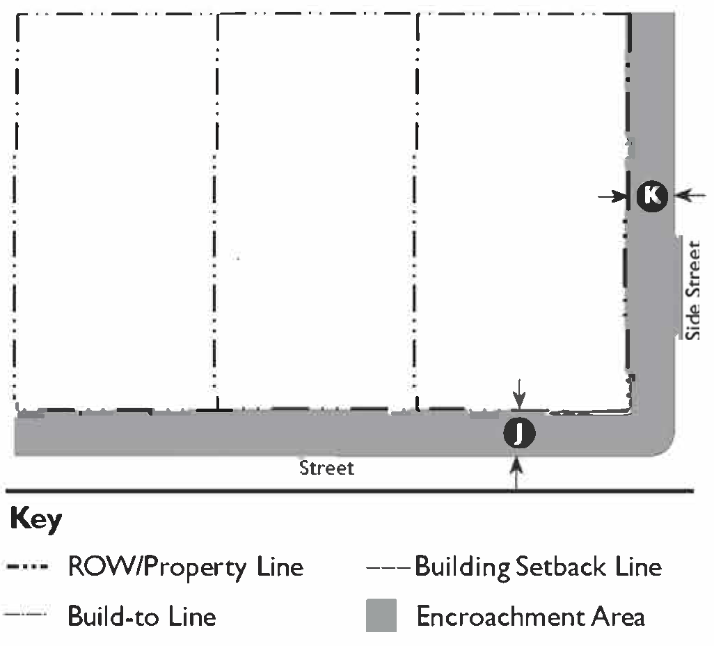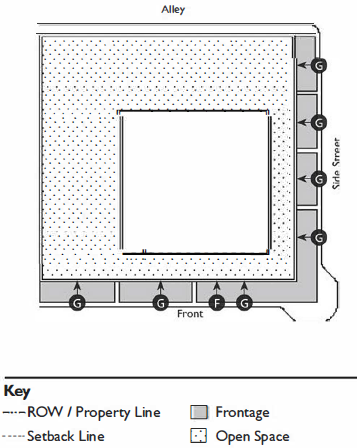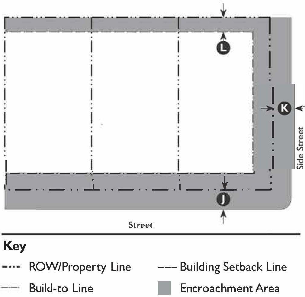 The Private Frontage Standards Chapter supplements the Building Form Standards by setting forth the standards for the components of a building that provide an important transition and interface between the public realm (street and sidewalk) and the private realm (yard or building). See Chapter 60 (Private Frontage Standards).