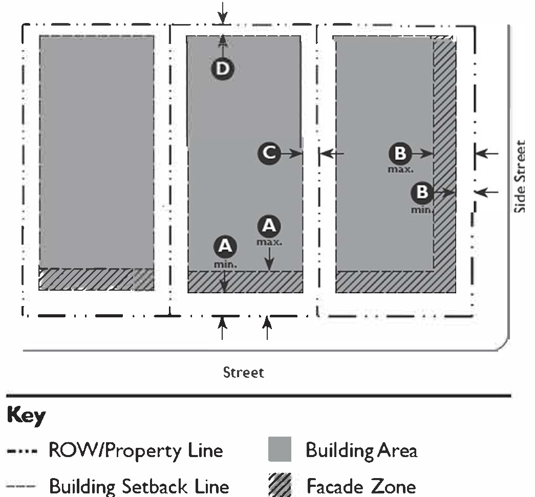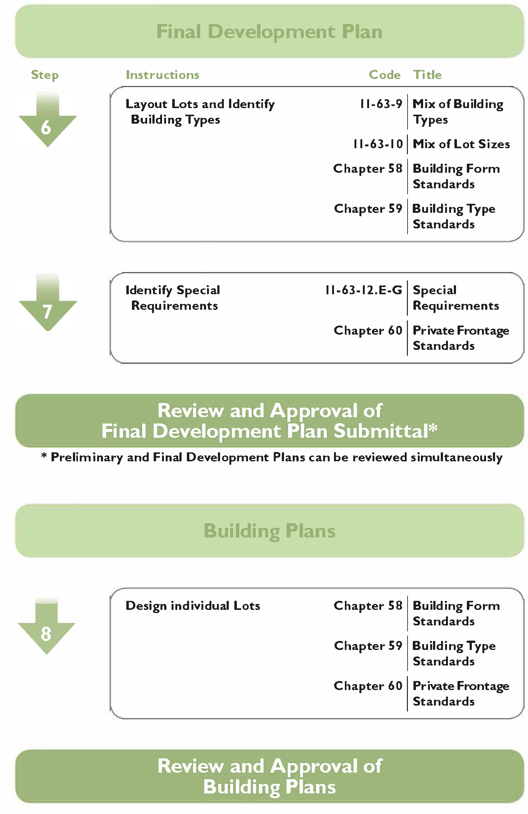 The Building Form Standards Chapter provides regulatory standards governing land use and building form within the transect zones. See Chapter 58 (Building Form Standards).