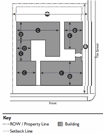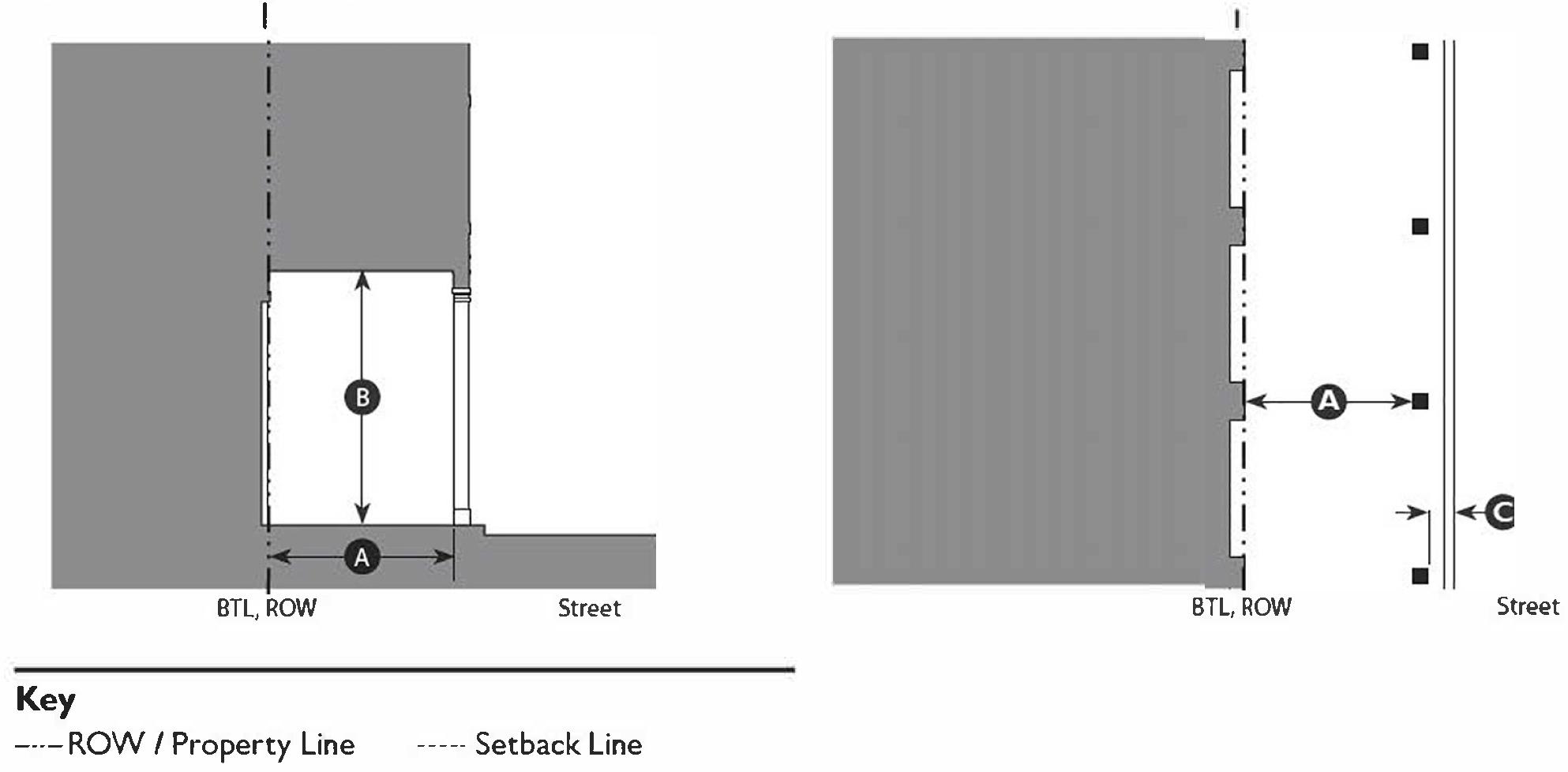 The Building Type Standards Chapter supplements the Building Form Standards by providing a more detailed set of standards related to the appropriate massing and form applicable to the development of each building type. See Chapter 59 (Building Type Standards).