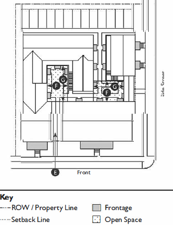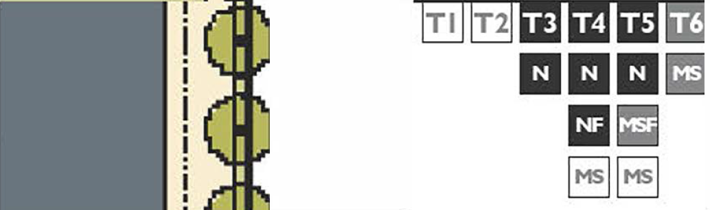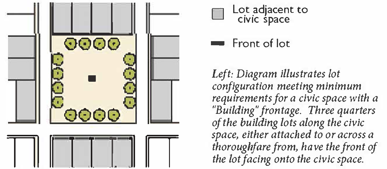 The Civic Space Standards Chapter provides a set of civic space types and their associated standards to use within the transect zones. See Chapter 62 (Civic Space Standards).