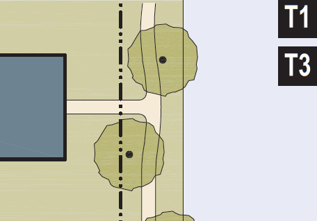 | TRANSECT ZONE Public Frontage Type | T1 T2 HW & RD | T1T3 RD & ST | T3T4 ST & DR | T3T4T5 RS-ST-AV-DR | T4 T5 T6 ST-AV-BV | T4 T5 T6 D ST-AV-BV |