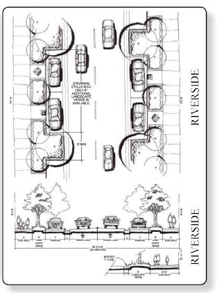 Same as Typology 5 with a bioswale in place of detectable river rock.