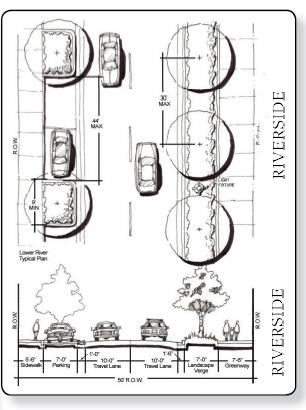 On-Street Greenway layout shall create enhanced paths between waterfront segments.