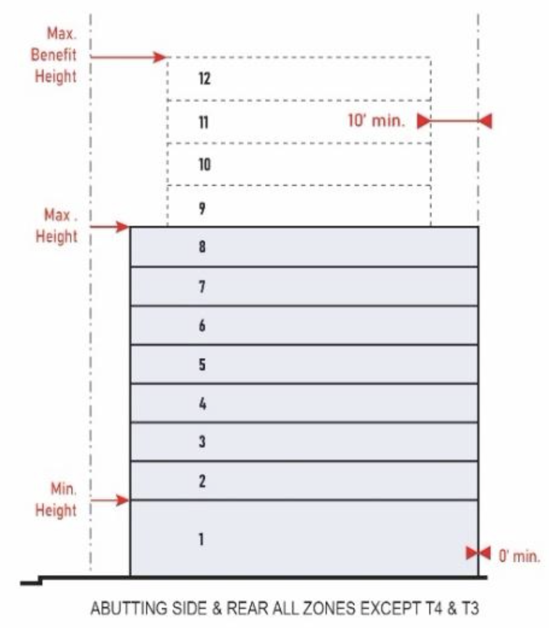 | c. Max. Benefit Height | 1 Story, Abutting all Transect Zones except T3 | |