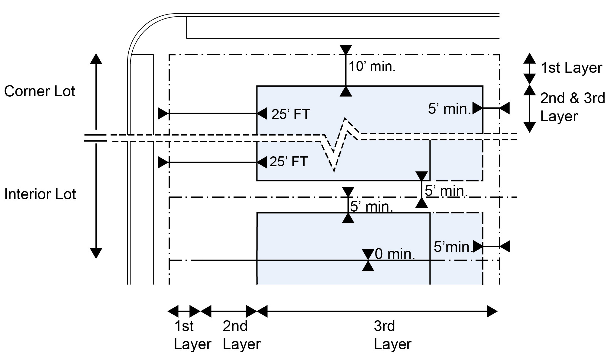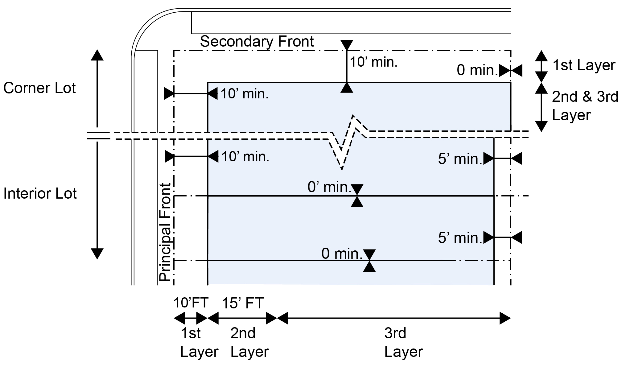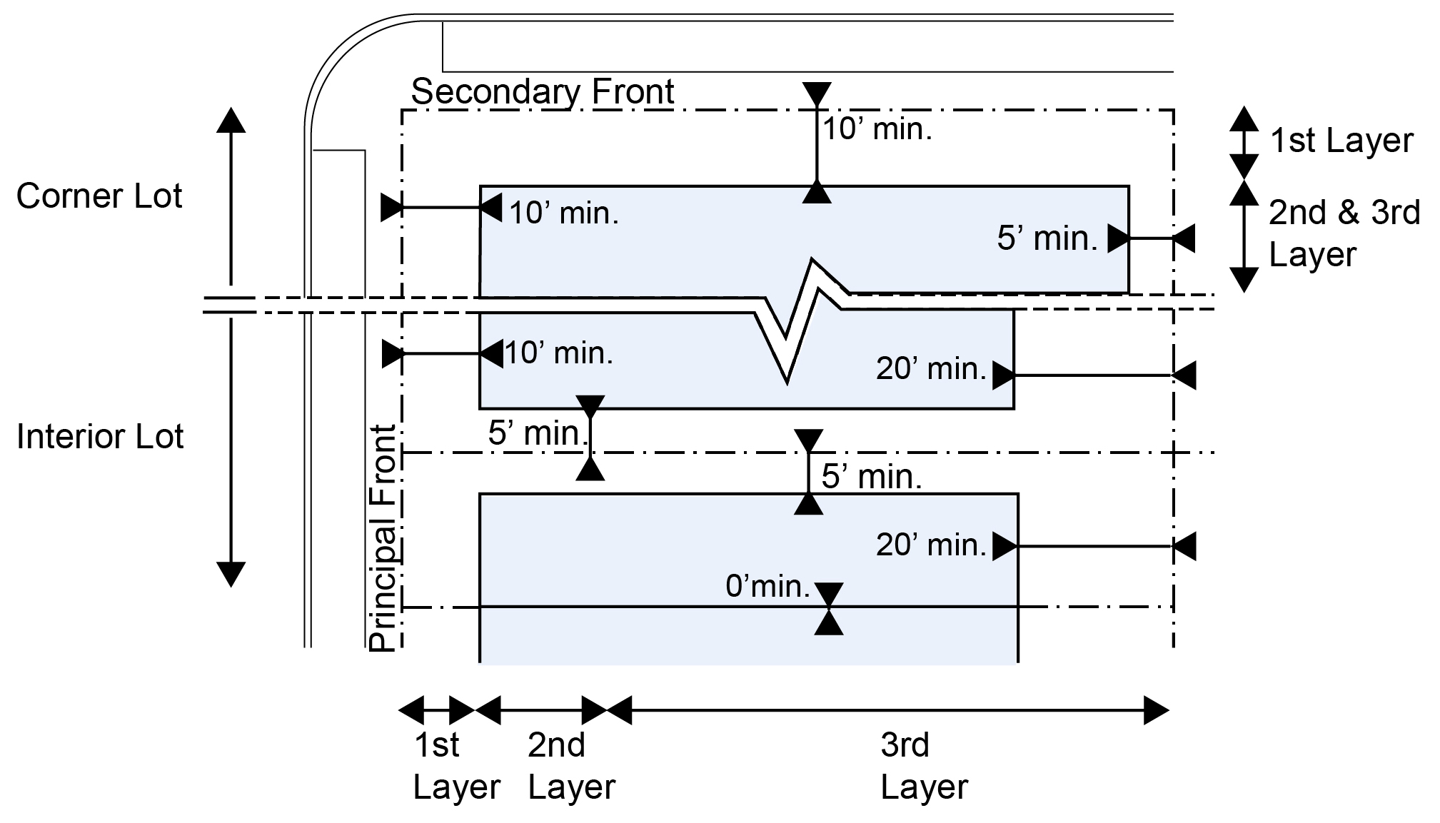 | b. Secondary Front | 10 ft. min. | |
