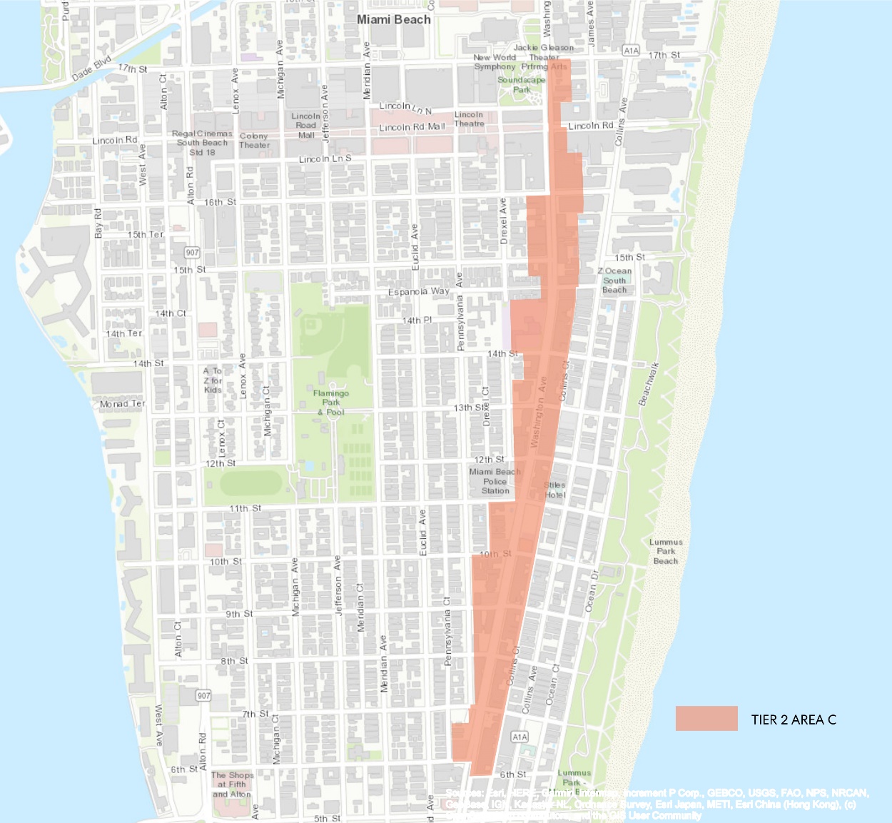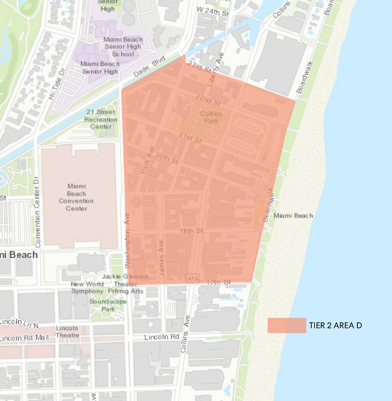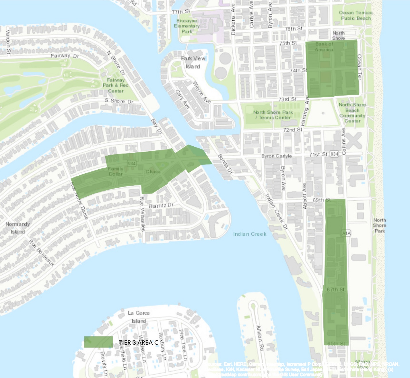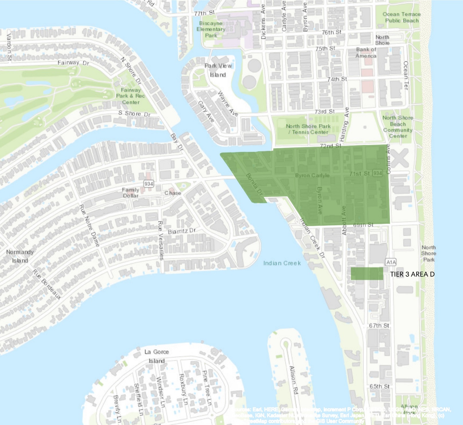 | Properties bounded by 62nd Street on the south, 73rd Street on the north, Indian Creek on the west and the Atlantic Ocean on the east | 0.5 spaces per unit, up to a maximum of 100 units and 1 space per unit for all units in excess of 100 units | |