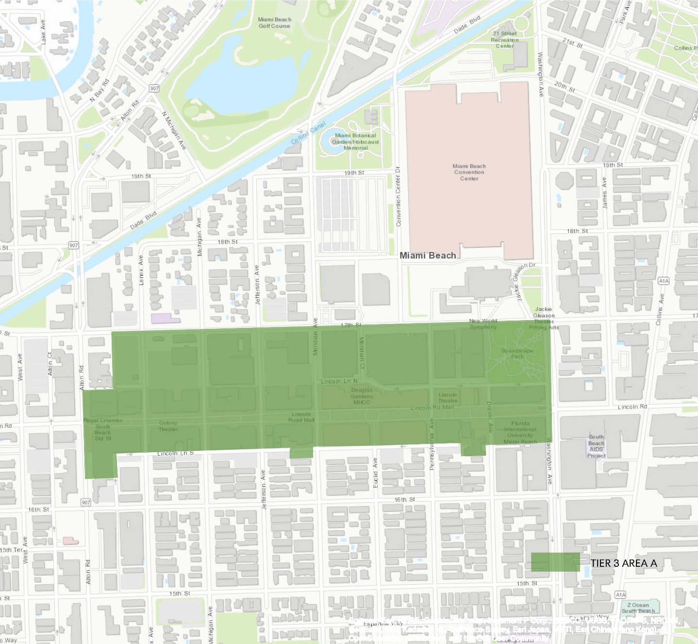 | Sites within the Lincoln West Parking Subzone, which is located between 16th Street and Collins Canal | Unified developments that provide at least 200 parking spaces on site | The following additional provisions shall apply: