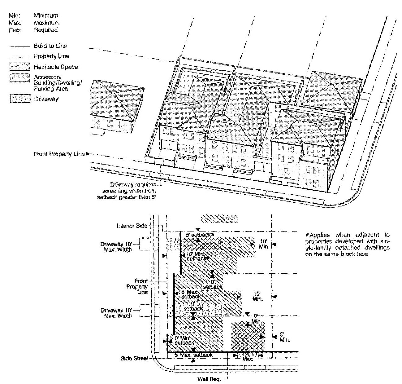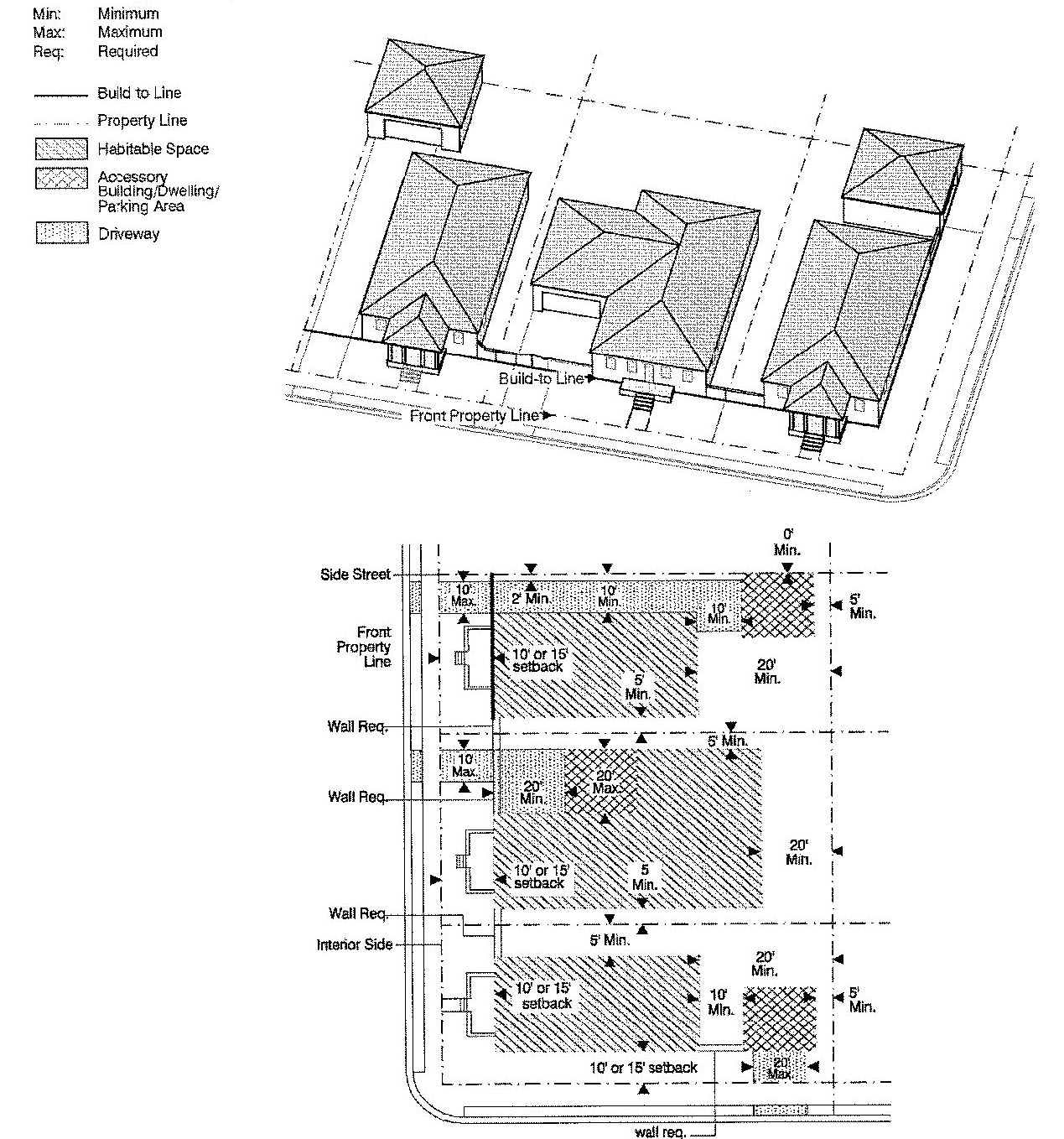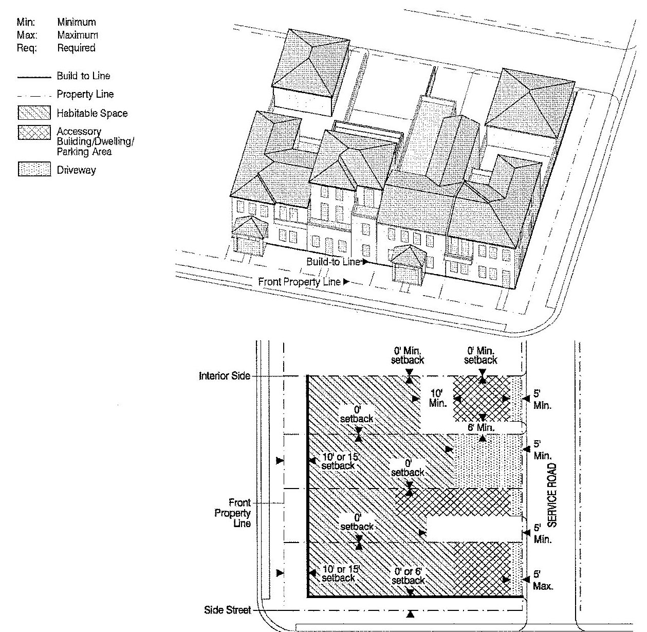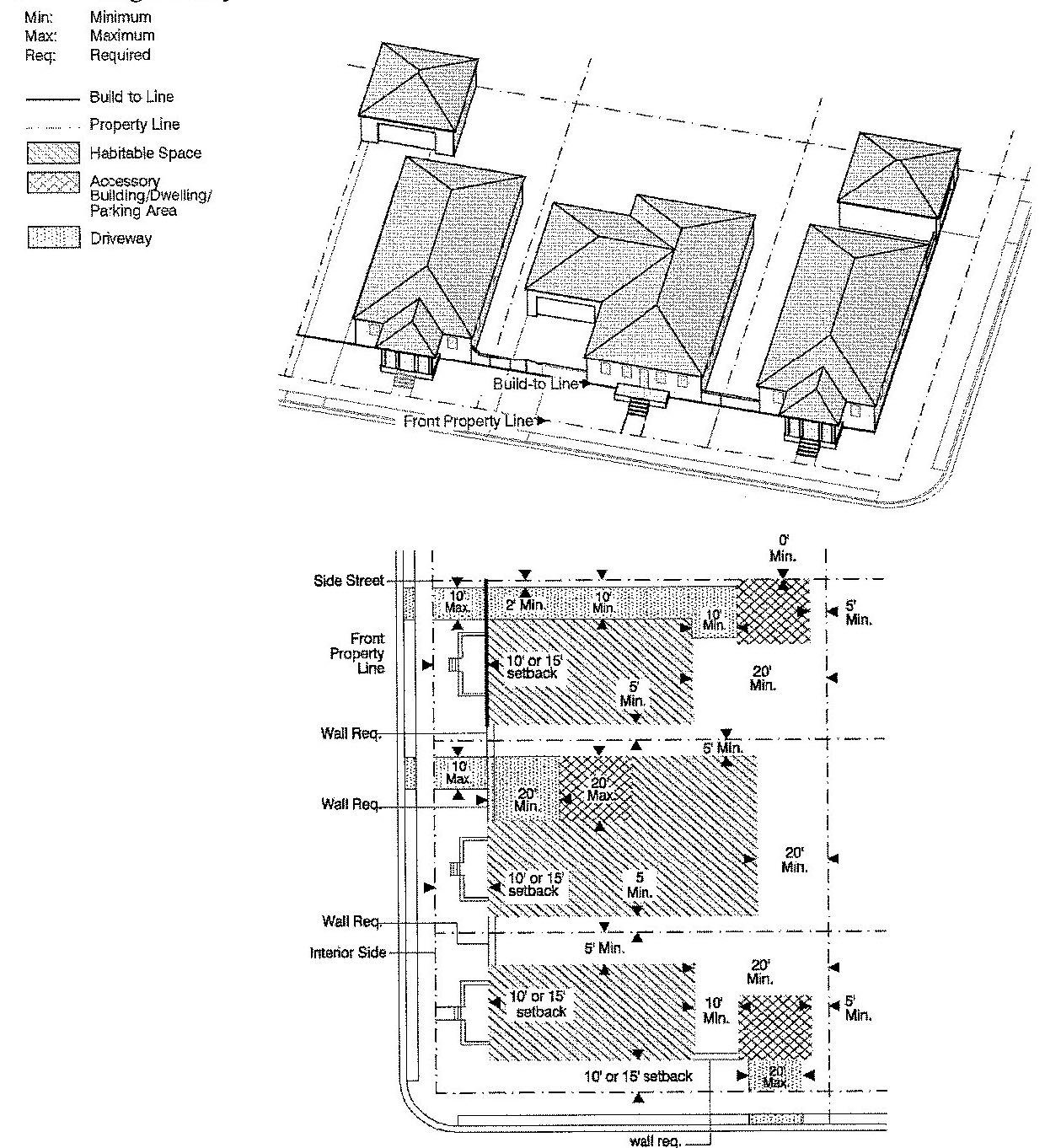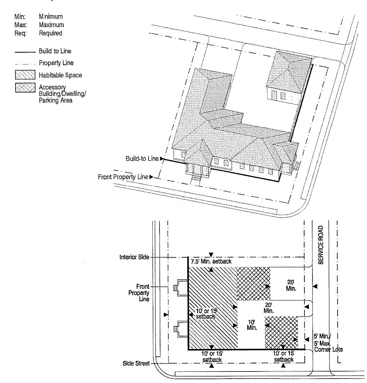 Lot lines, setbacks and build-to lines;